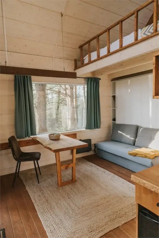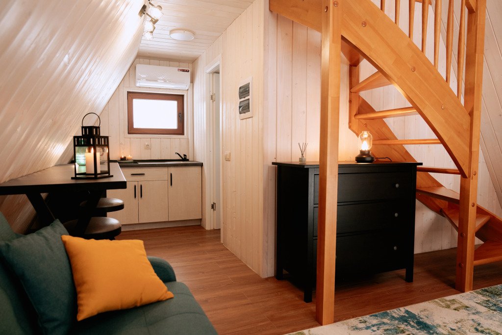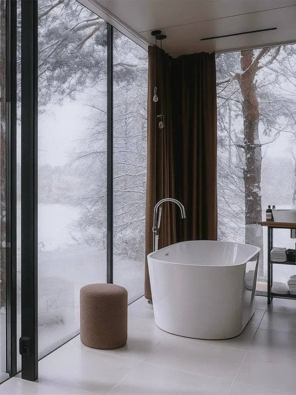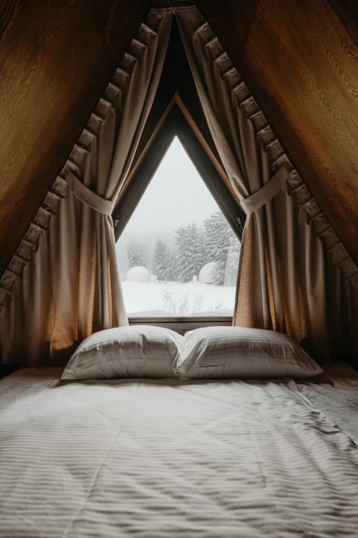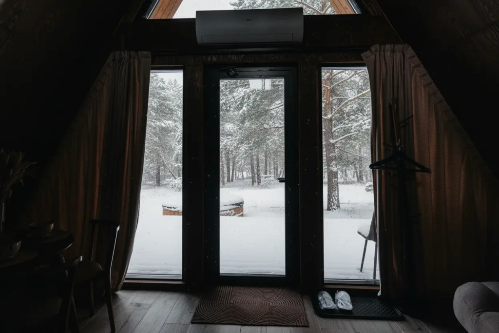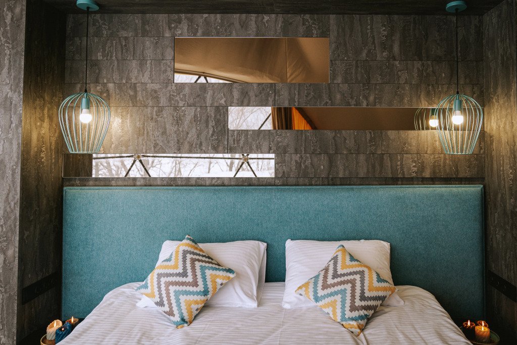 Все домики-полусферы расположены на первой линии, где одна их часть выходит на реку, а другая — на залив.