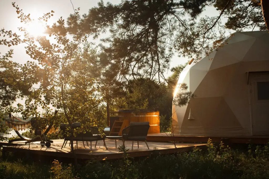 Глэмпинг «Точка Немо» находится в Ярославской области, в 25 км от Ярославля на берегу Волги, среди сосен.