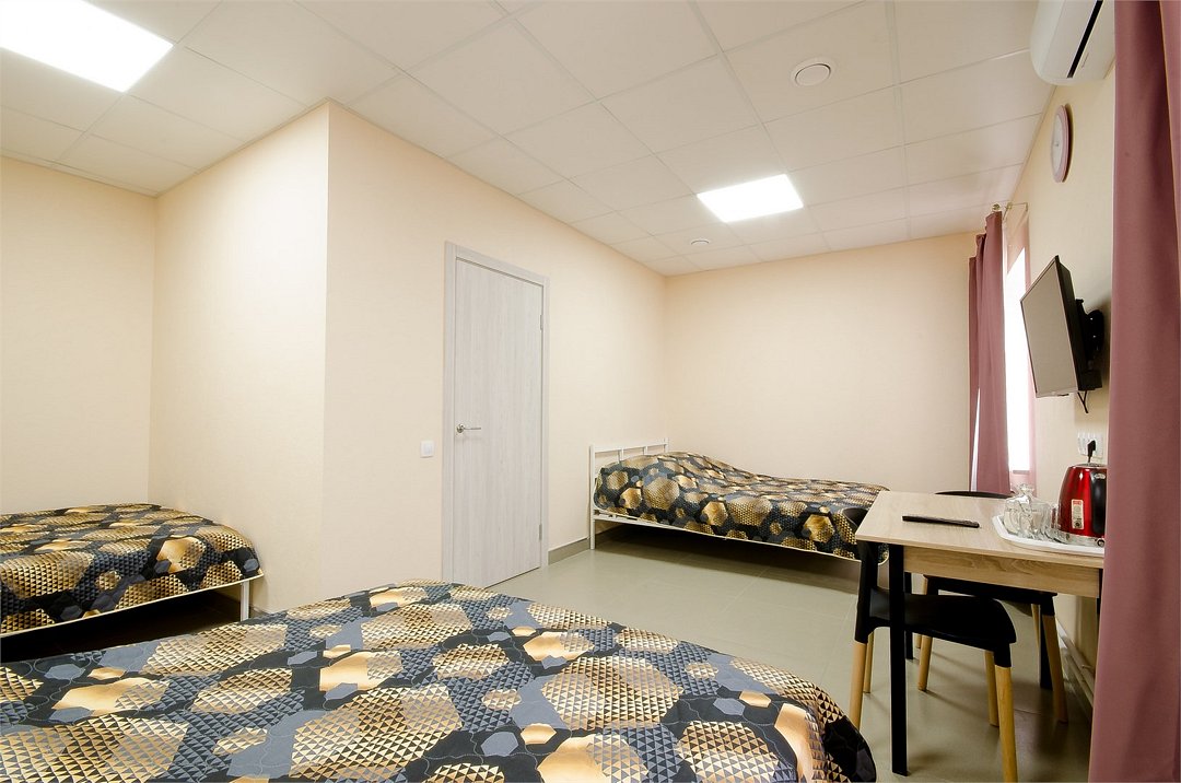 В номере есть 3 кровати 90х200, матрасы пружинные, стол и стул, 3 шкафчика, сделан новый ремонт, хлопковое белье.Услуги и удобства