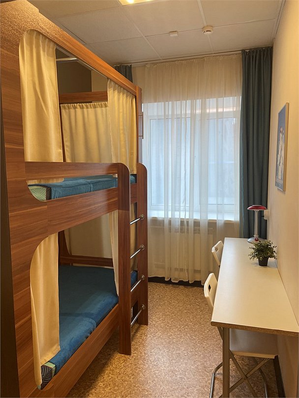 Отличный выбор для экономного 2-местного проживания на 3 этаже, удобные кровати с ортопедическими матрасами и индивидуальным освещением. Все кровати оборудованы шторками для более комфортного отдыха. Утром отличный завтрак. Всегда чай, кофе.