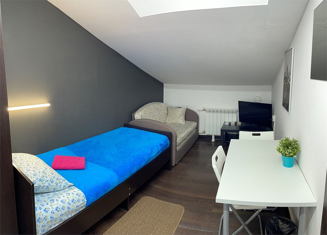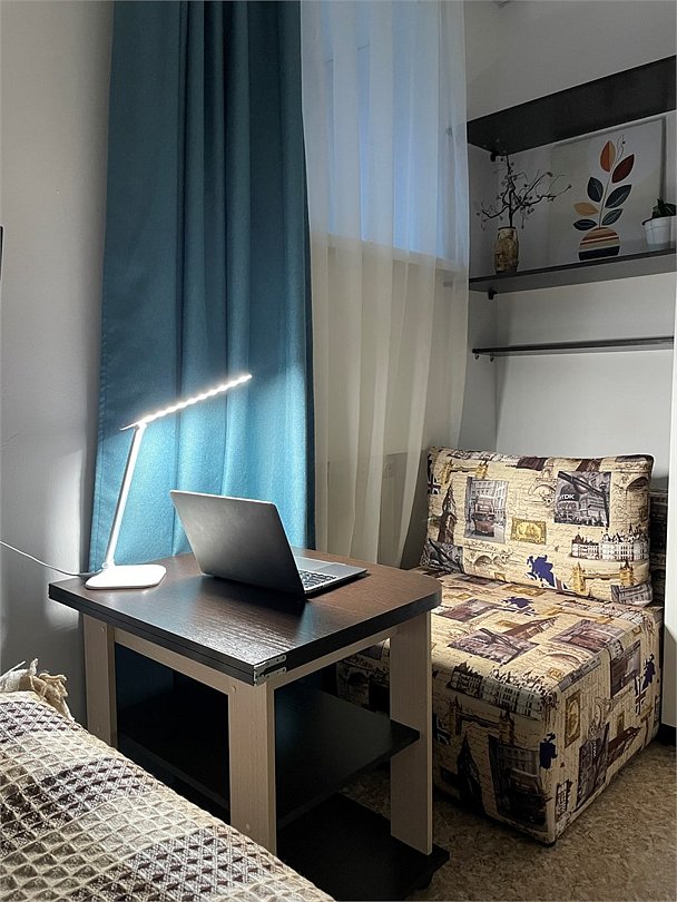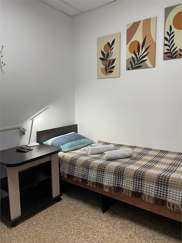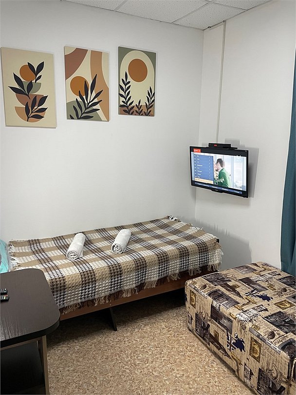 Одноместный номер на 1 этаже с ТВ и возможностью размещения второго гостя на удобном диванчике с полноценным спальным местом. Подходит для направляющихся в командировку и для студентов, не готовых переплачивать за удобства отеля, но желающих быть наедине.Услуги и удобства