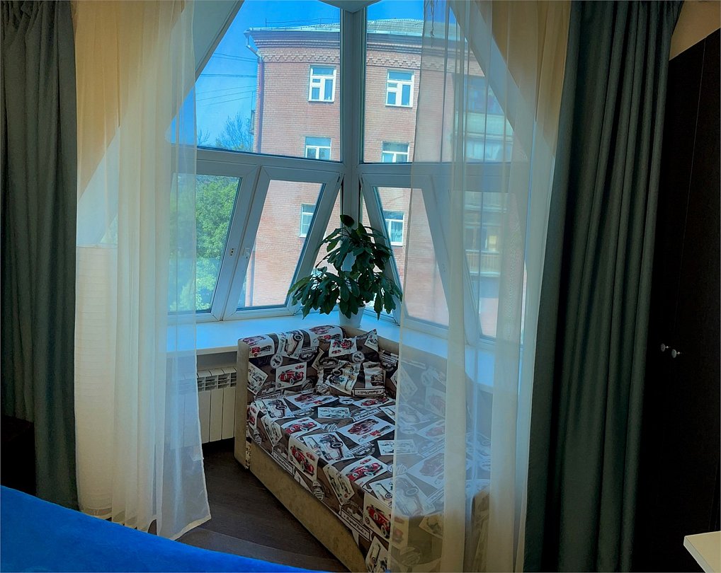 Комфортный номер с большими затемненными панорамными окнами. Отличный выбор для двоих человек. Тихий и спокойный номер с ТВ на 4 этаже.Услуги и удобства