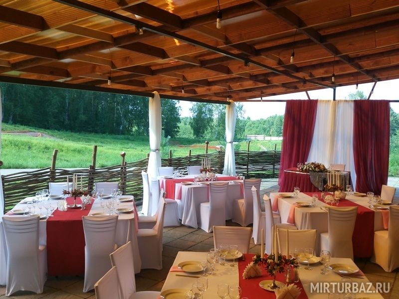Открытый зал рассчитан на 70 человек комфортного пребывания. Площадь веранды позволяет принять и большее количество гостей, в зависимости от формата мероприятия.