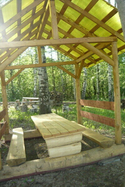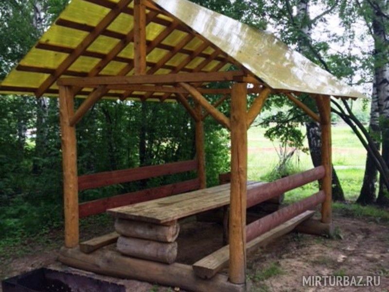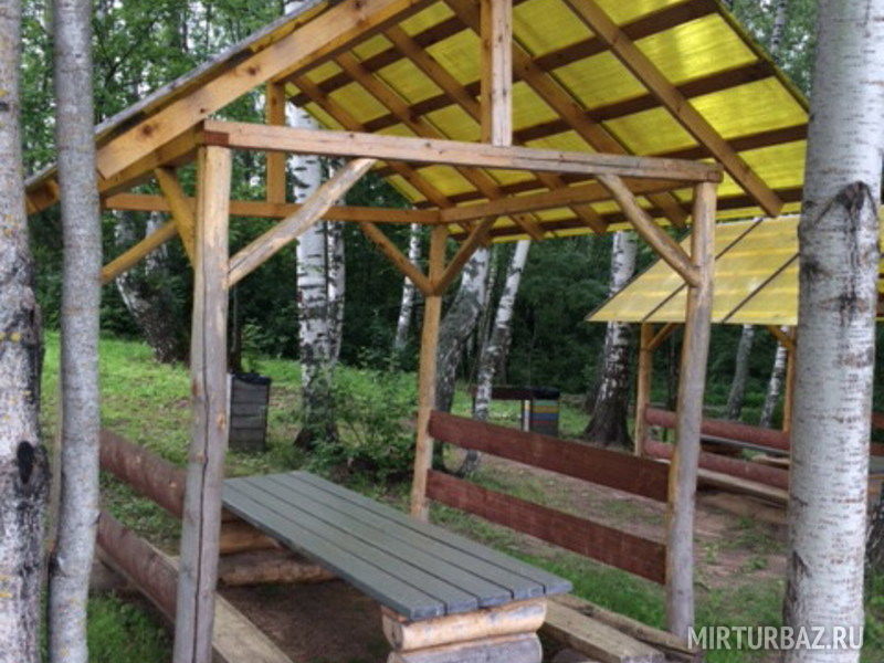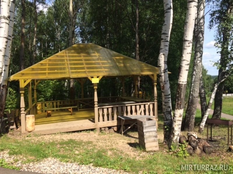 На территории есть открытые летние беседки. Они оборудованы столами, лавками и мангалом. Уголь, шампуры вы можете привезти с собой, а можете взять в аренду.