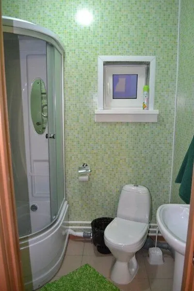 Инфраструктура: зона отдыха, полотенца, шапочки, душРусская баня, которая свободно вмещает в себя 6 человек. Есть место отдыха, парилка, душевая кабина, магнитофон и все необходимые принадлежности: стаканчики, большие банные вафельные полотенца, универсальные шампунь и гель для душа.