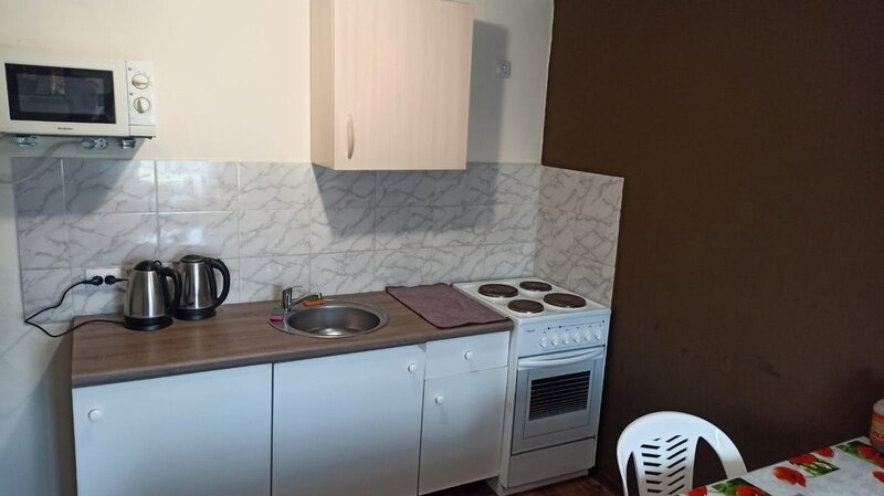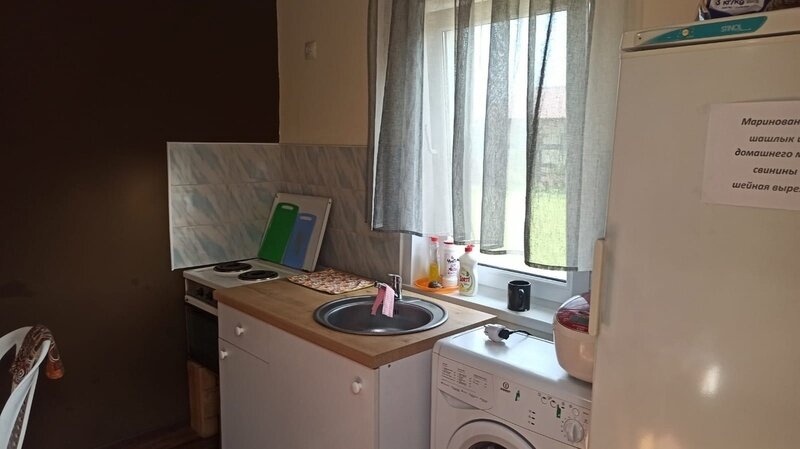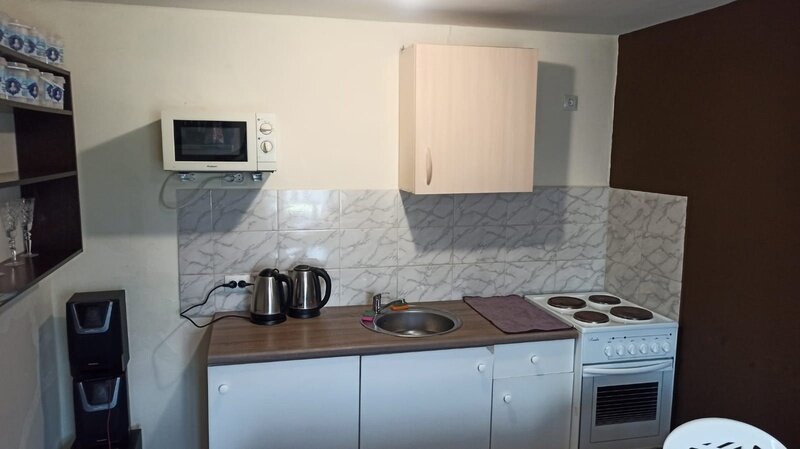 Питание: общая кухня и мангальная зона, где можно самостоятельно готовить еду. Кухня оснащена плитой, холодильником, мультиваркой, СВЧ-печкой, чайником, посудой и столовыми приборами.
