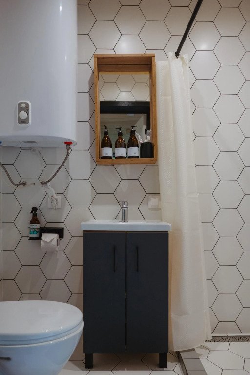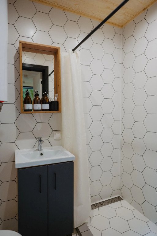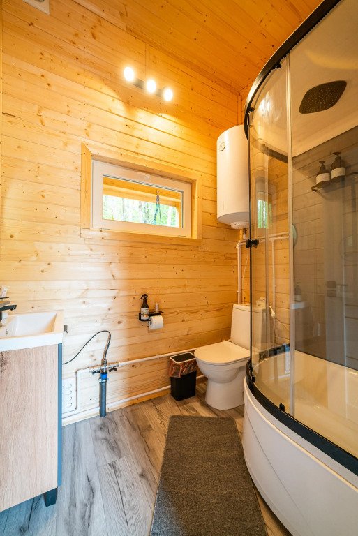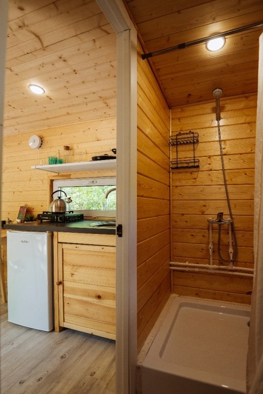 Санузел с душем, кухонная зона, мангальная зона, мини-холодильник
