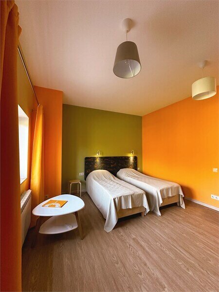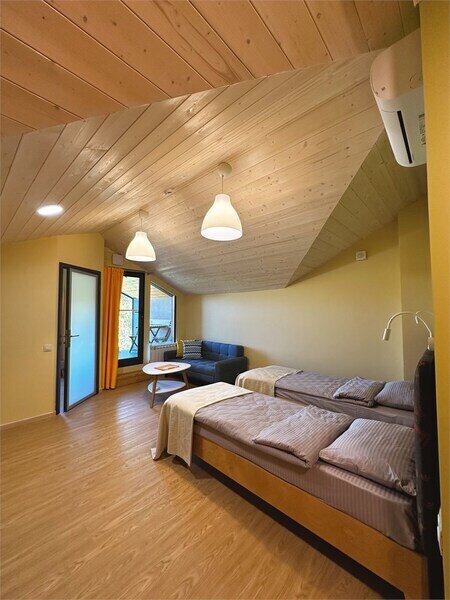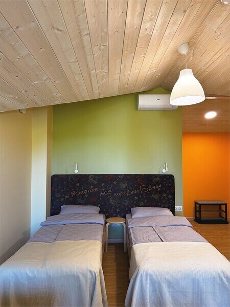 Две односпальные кровати, одна двуспальная кроватьГостевой Дом Шарик