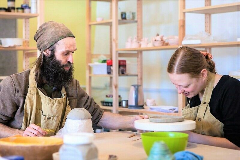 Печь для обжига в аренду под пристальным контролем нашего мастера-керамиста.