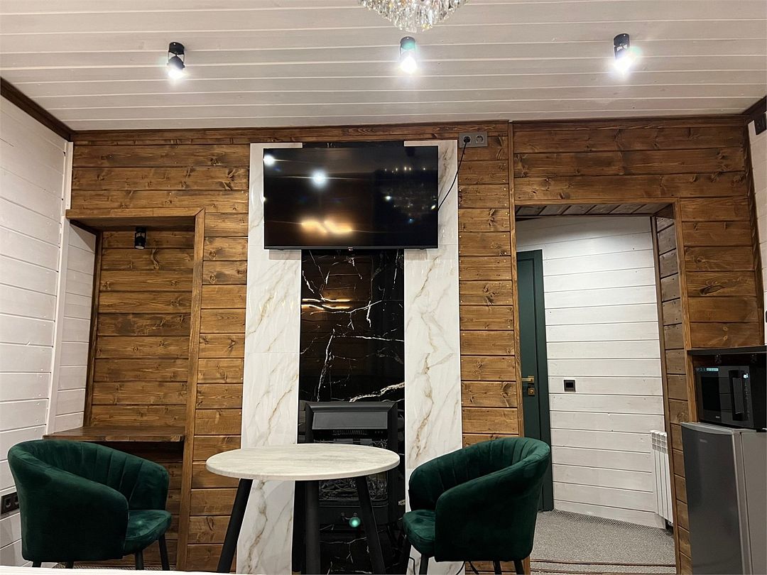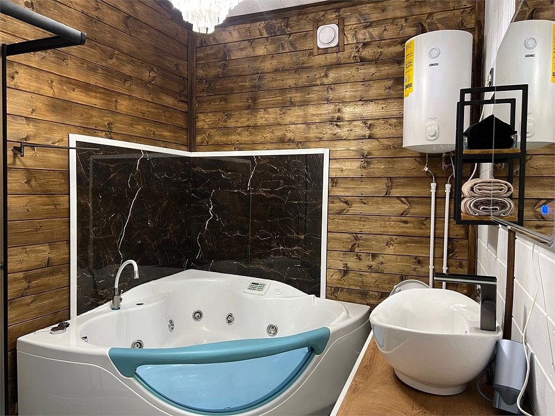 Большой четырёхместный финский домик со всем необходимым для комфортного проживания. Закрытая охраняемая территория, бесплатная парковка, мангал, сауна, сибирский чан.
