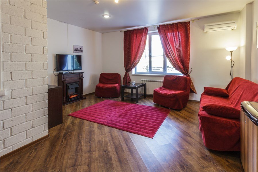 Двухкомнатные апартаменты, мини-кухня, сан. узел (ванна), телевизор LCD 81 см., мягкие кресла, диван, обеденный стол, стулья, журнальный столик, .Услуги и удобства