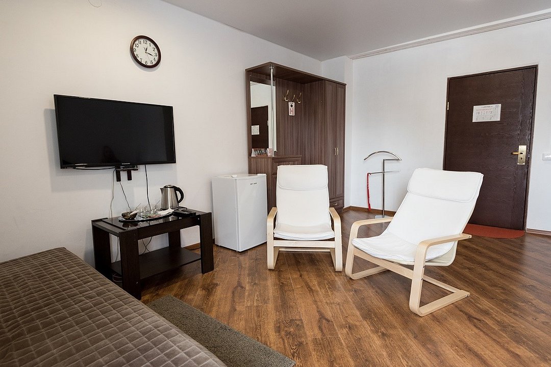 Полулюкс однокомнатный, сан. узел (душевая кабина), телевизор LCD 81 см.,диван, письменный стол, журнальный столик, , кресла, прикроватные тумбочки.Услуги и удобства