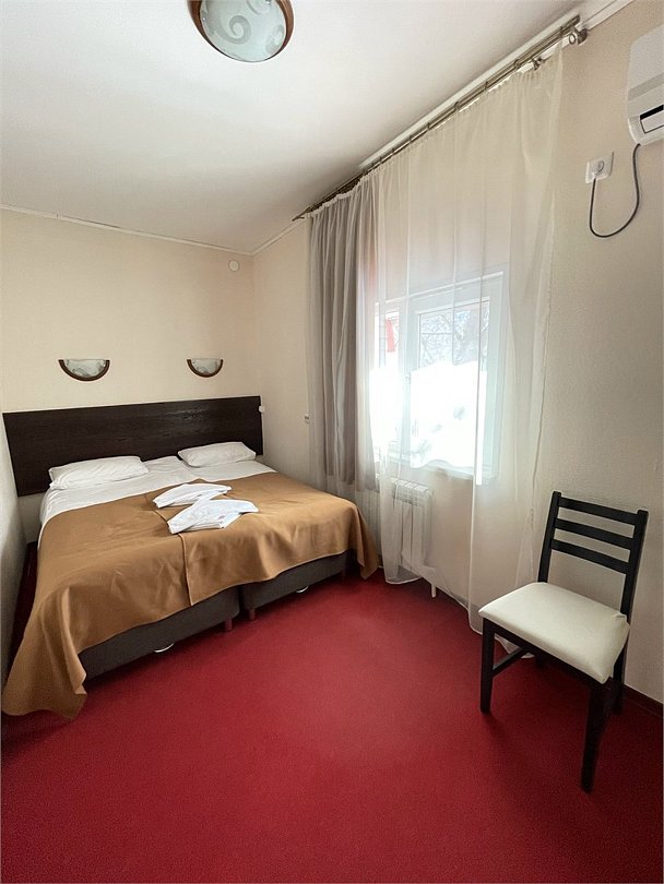 Номер с двуспальной кроватью 140 на 200- это то, что так необходимо после насыщенного яркими эмоциями и впечатлениями прошедшего дня. Номер обустроен всем необходимым для комфортного проживания. Телевизор, холодильник, рабочий стол, чайник, ванная комната и косметические средства.Услуги и удобства