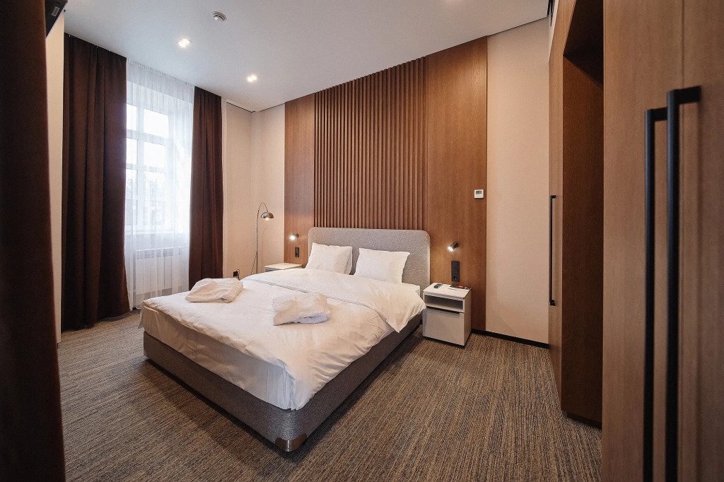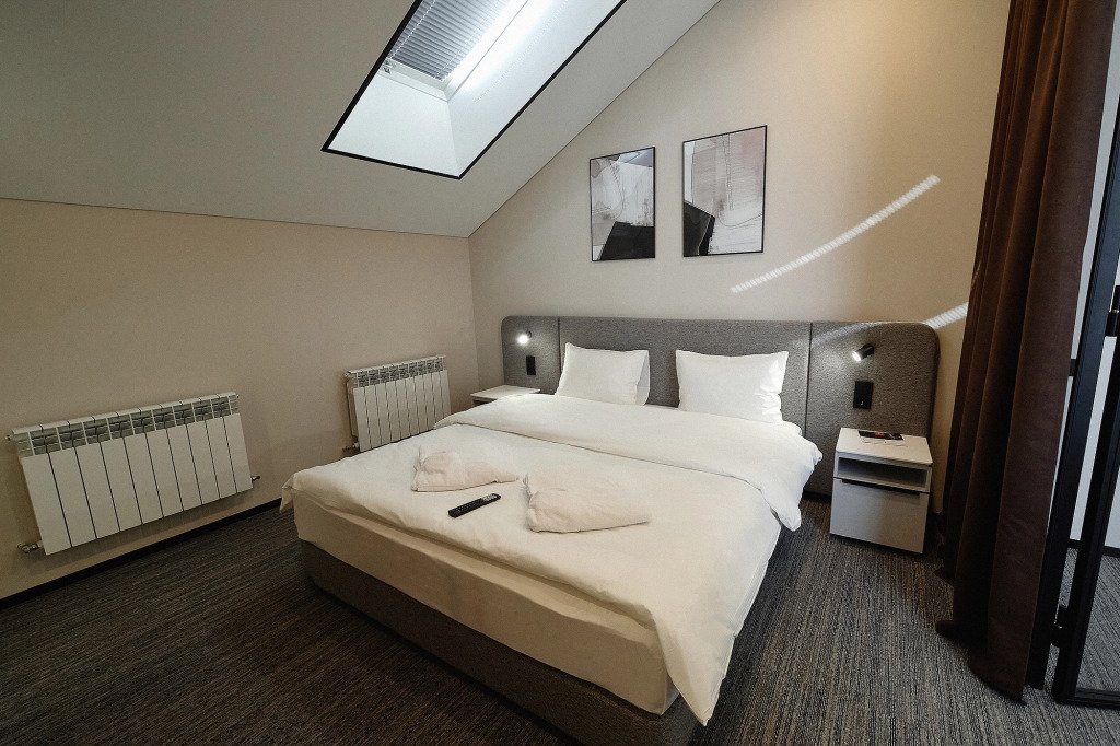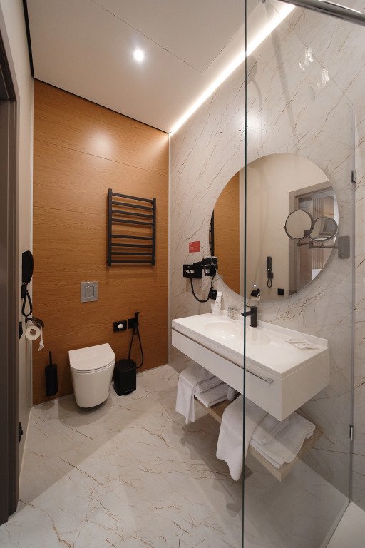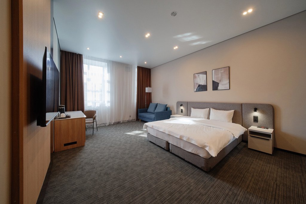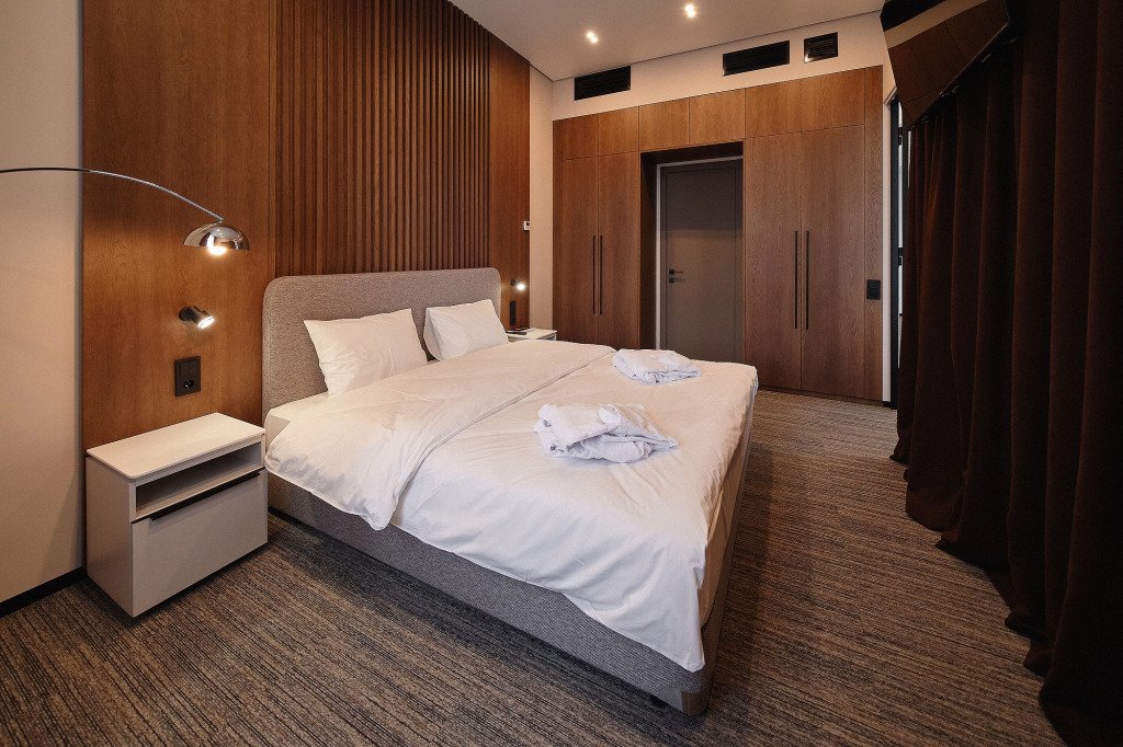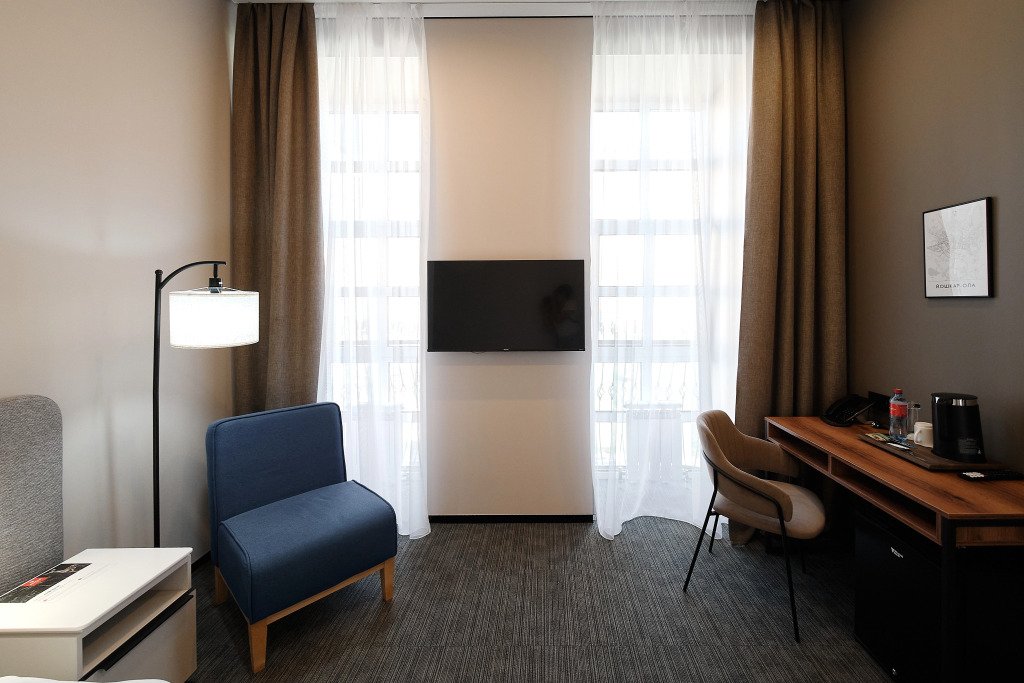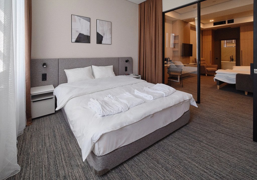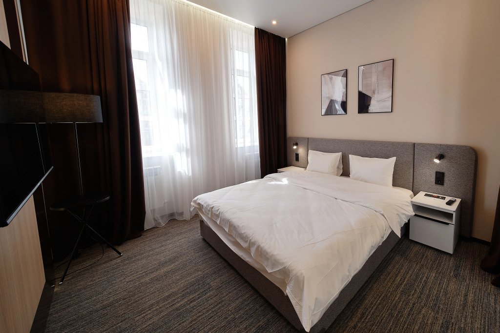 Номер оснащён необходимым, чтобы отдохнуть после долгого и насыщенного дня. Имеются телевизор и халат. Оснащение зависит от выбранной категории номера.