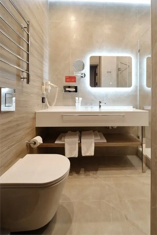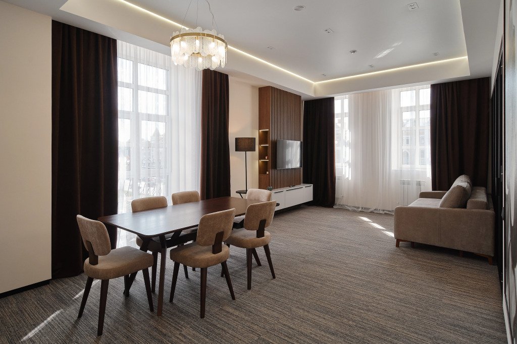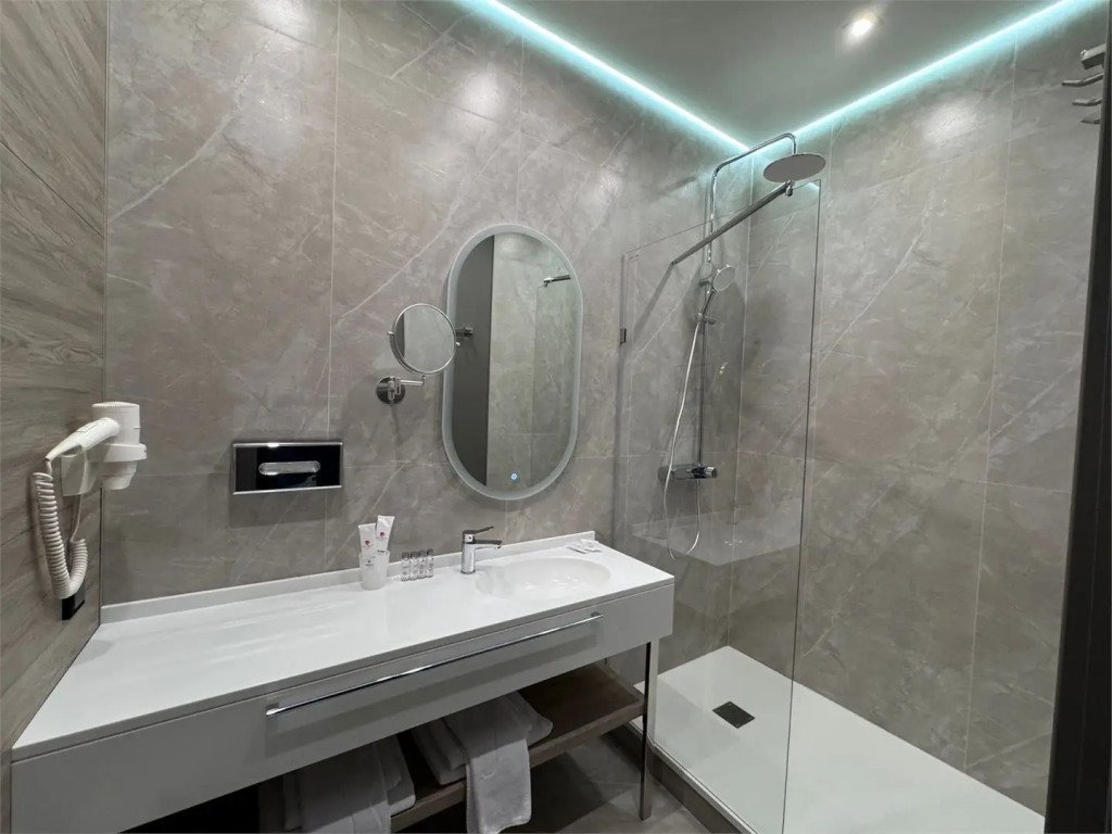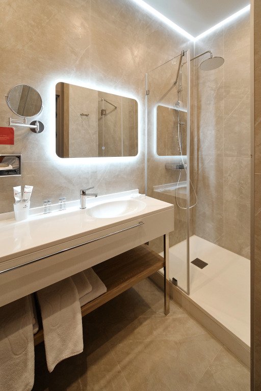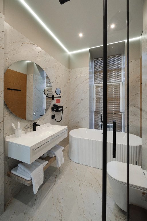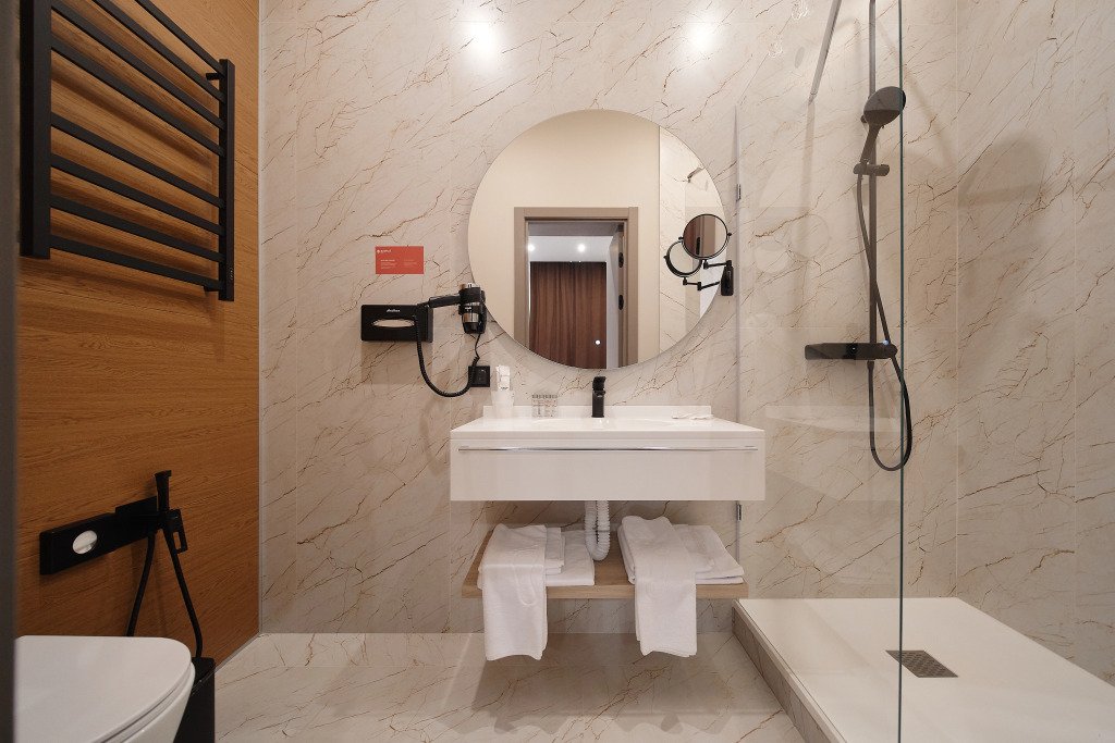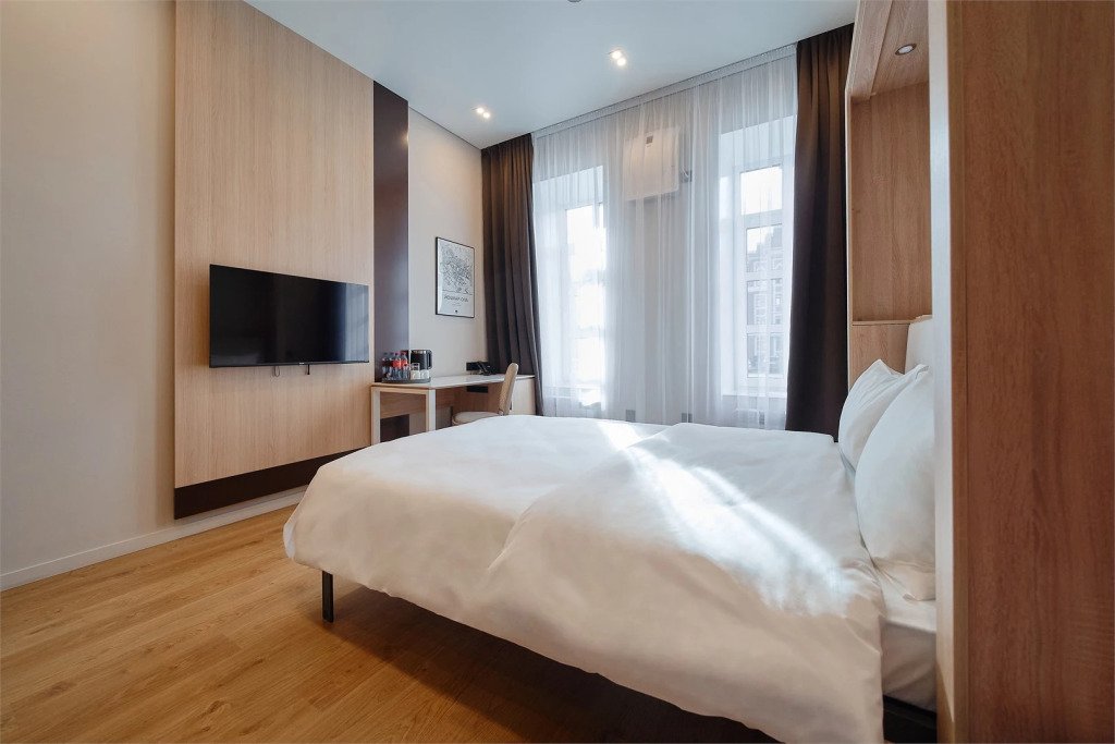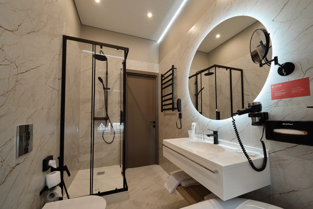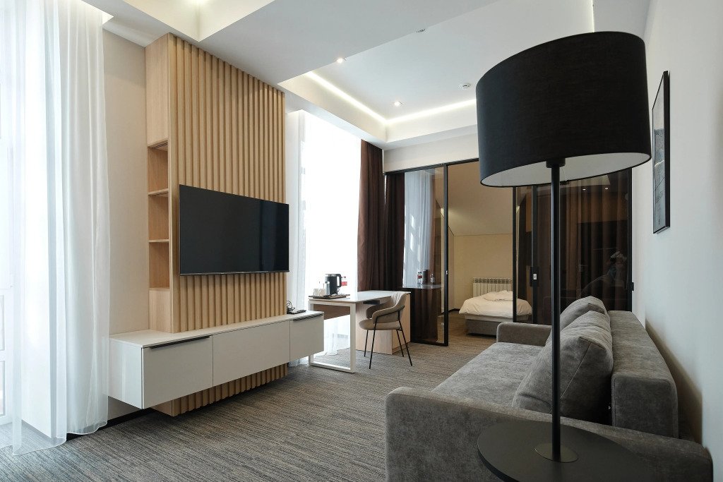 Номер оснащён необходимым, чтобы отдохнуть после долгого и насыщенного дня. Имеются телевизор и халат. Оснащение зависит от выбранной категории номера.