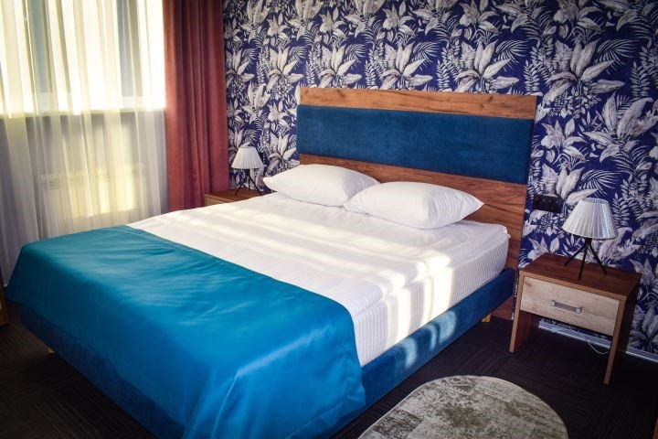 Стандарт + площадью от 15 метров, с двуспальной кроватью 140*200, а также с кондиционером, электрическим чайником и телевизором с диагональю 43 дюйма. Уютный номер прекрасно подойдет как для бизнес-поездок, так и для отдыха с любимыми. Номер оснащен душевой кабиной с тропическим душем.Услуги и удобства