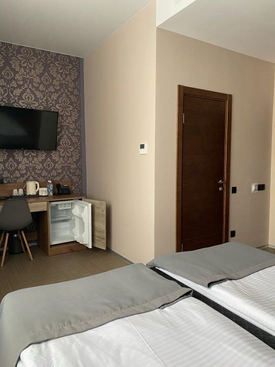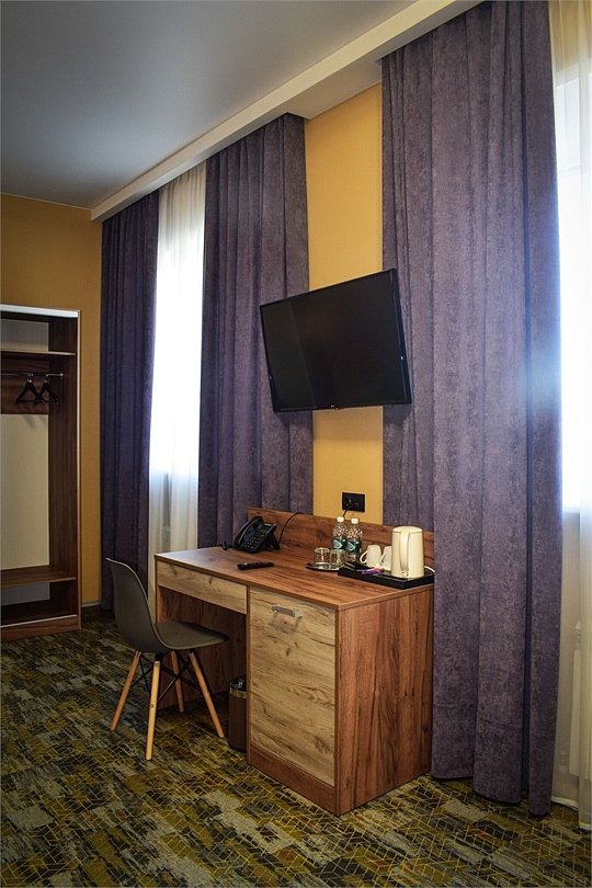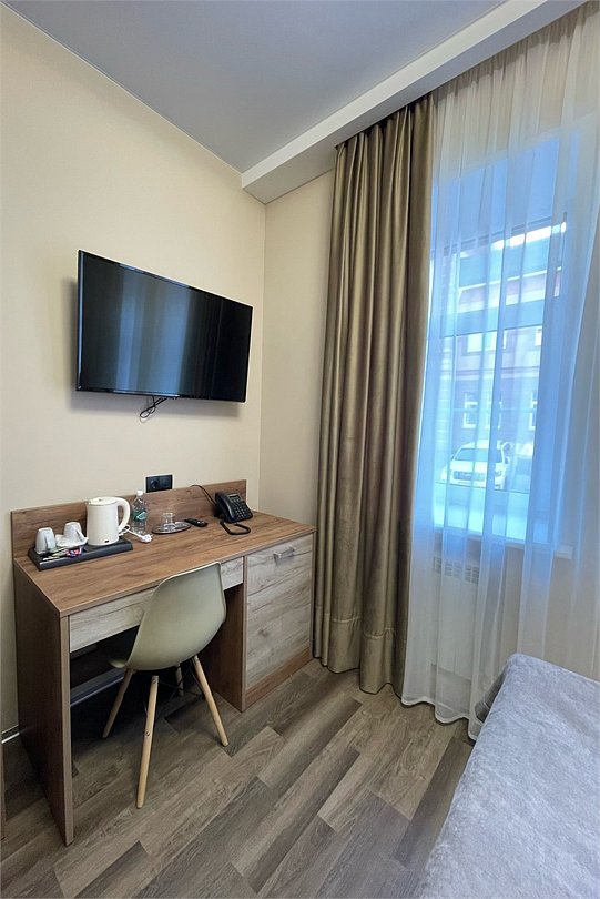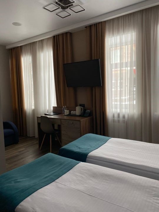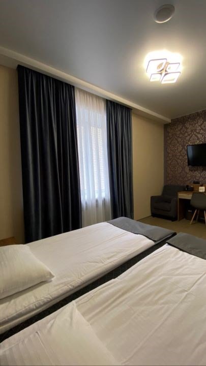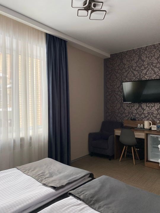 телевизор, Wi-Fi, интернет, телефон, кондиционер, настольные лампы, фен, душевая кабина, тапочки, гигиенические средства, две односпальные кровати, вешалки, письменный стол, багажная тумба, зеркало, обслуживание номеров, чайник, унитаз, раковина, отопление, вид на город, кулер на этаже, вид во двор, стаканы, стул, туалетные средства, туалет, цифровое тв, внутренний телефон, мини-холодильник, москитная сетка, шкаф-купе, рабочий стол, онлайн-регистрация до заезда, оснащение для гостей с ограниченными возможностями, морозильная камера, уборка номера, услуги прачечной (платно), бутилированная вода, шапочка для душа, мылоВ номере