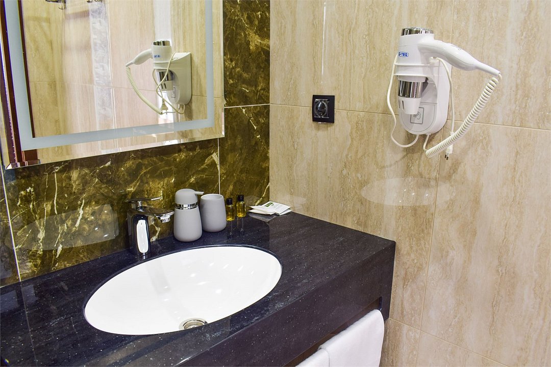 телевизор, Wi-Fi, интернет, телефон, настольные лампы, фен, душевая кабина, тапочки, гигиенические средства, кровать «King size», диван, вешалки, письменный стол, багажная тумба, зеркало, обслуживание номеров, чайник, унитаз, раковина, отопление, вид на город, кулер на этаже, вид во двор, высокие потолки, стаканы, стул, туалетные средства, туалет, цифровое тв, диван-кровать, внутренний телефон, мини-холодильник, москитная сетка, шкаф-купе, рабочий стол, онлайн-регистрация до заезда, оснащение для гостей с ограниченными возможностями, морозильная камера, уборка номера, услуги прачечной (платно), бутилированная вода, шапочка для душа, мылоВ номере