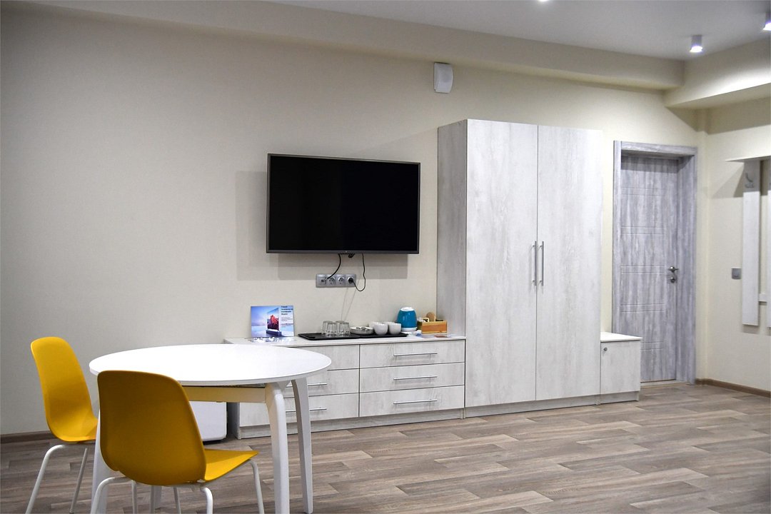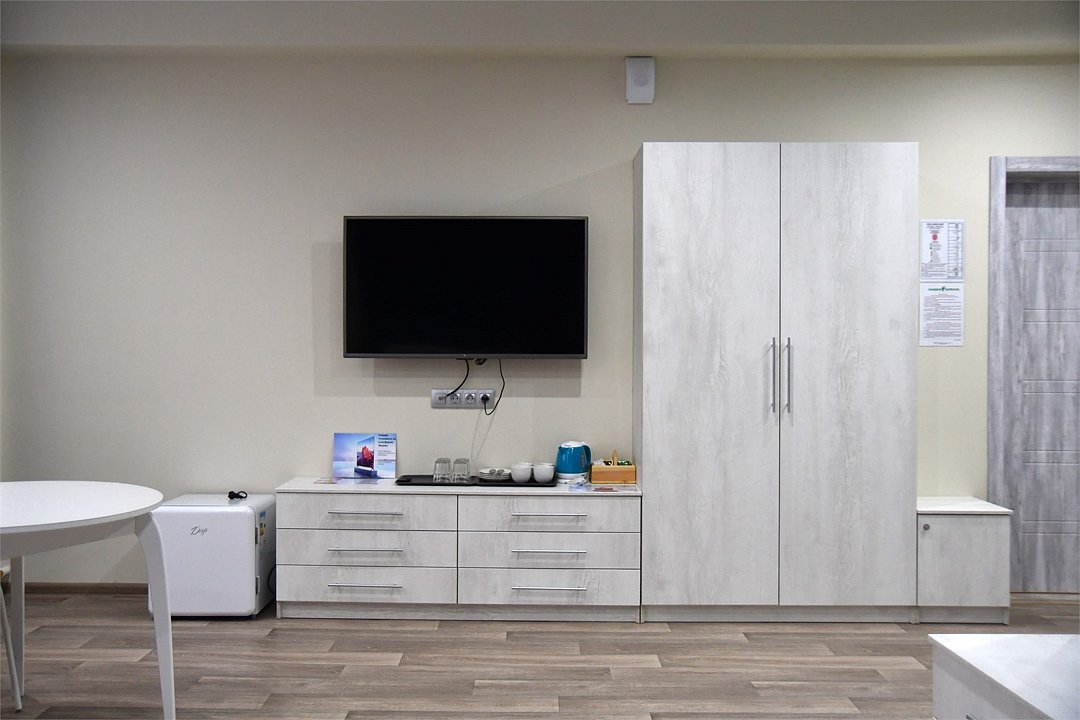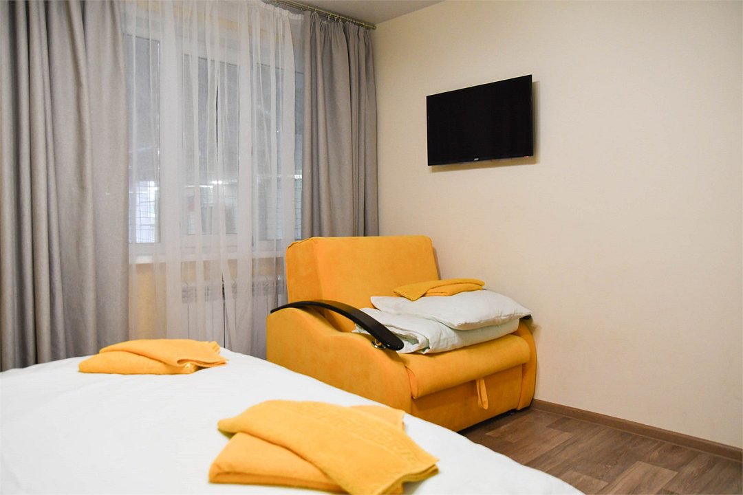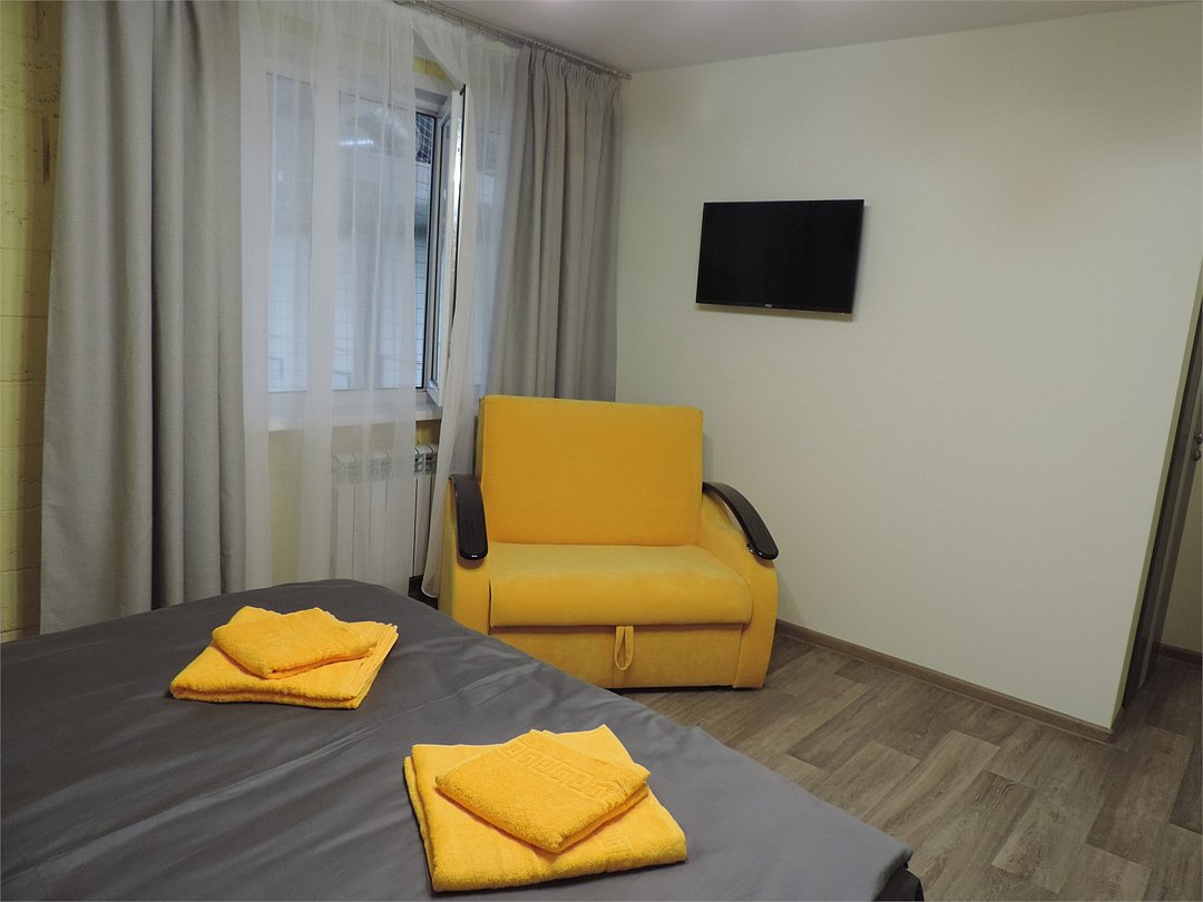 Wi-Fi, холодильник, светильник, душевая кабина, санузел, косметические средства, двуспальная кровать, унитаз, вид на город, кулер на этаже, туалет, сплит-система, диван-кровать, телевизор с плоским экраном, мини-холодильник, без питомцевВ номере