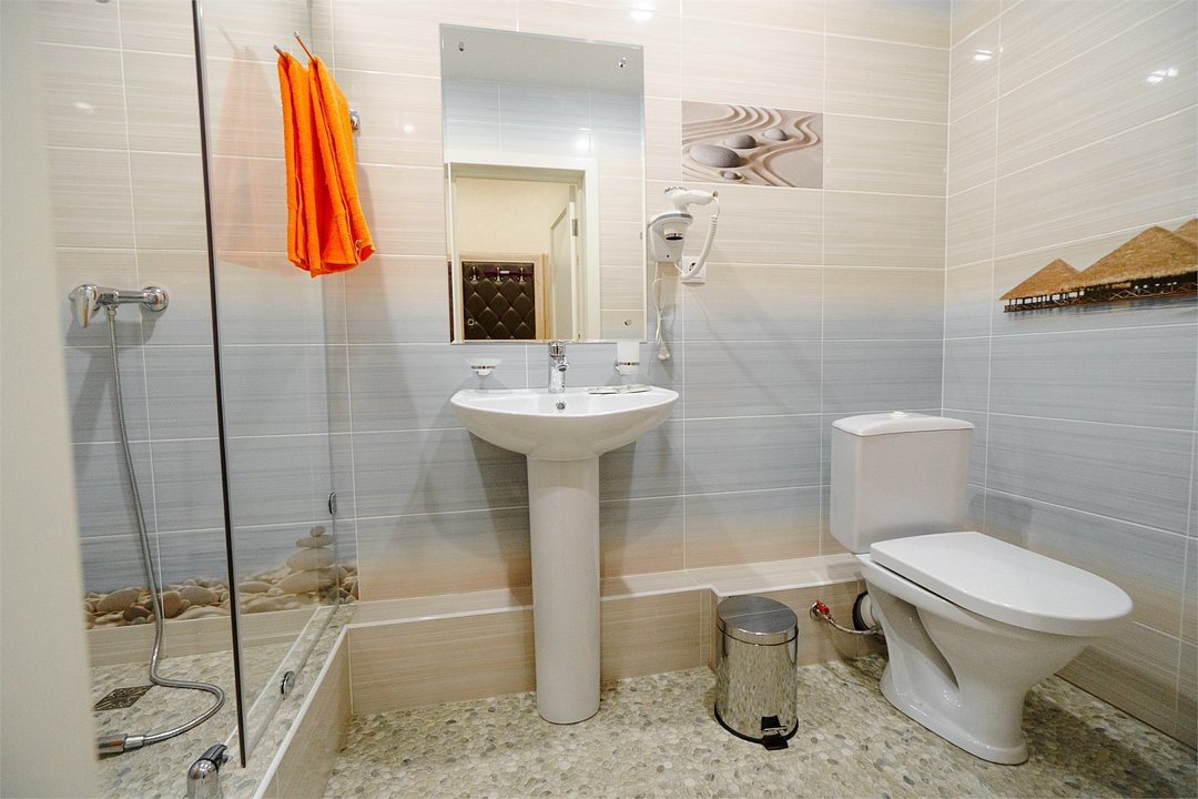 Wi-Fi, светильник, настольные лампы, фен, электронные замки, душевая кабина, банные полотенца, гигиенические средства, двуспальная кровать, тумбы, шкаф для одежды, зеркало, унитаз, раковина, отопление, отдельный вход в номер, душ, вид на город, кресло, вид во двор, ламинат, высокие потолки, туалетный столик, тумба, туалетный столик, туалетные средства, сплит-система, цифровое тв, телевизор с плоским экраном, москитная сетка, гостиничная парфюмерия, номер для некурящих, пуфик, без питомцевВ номере