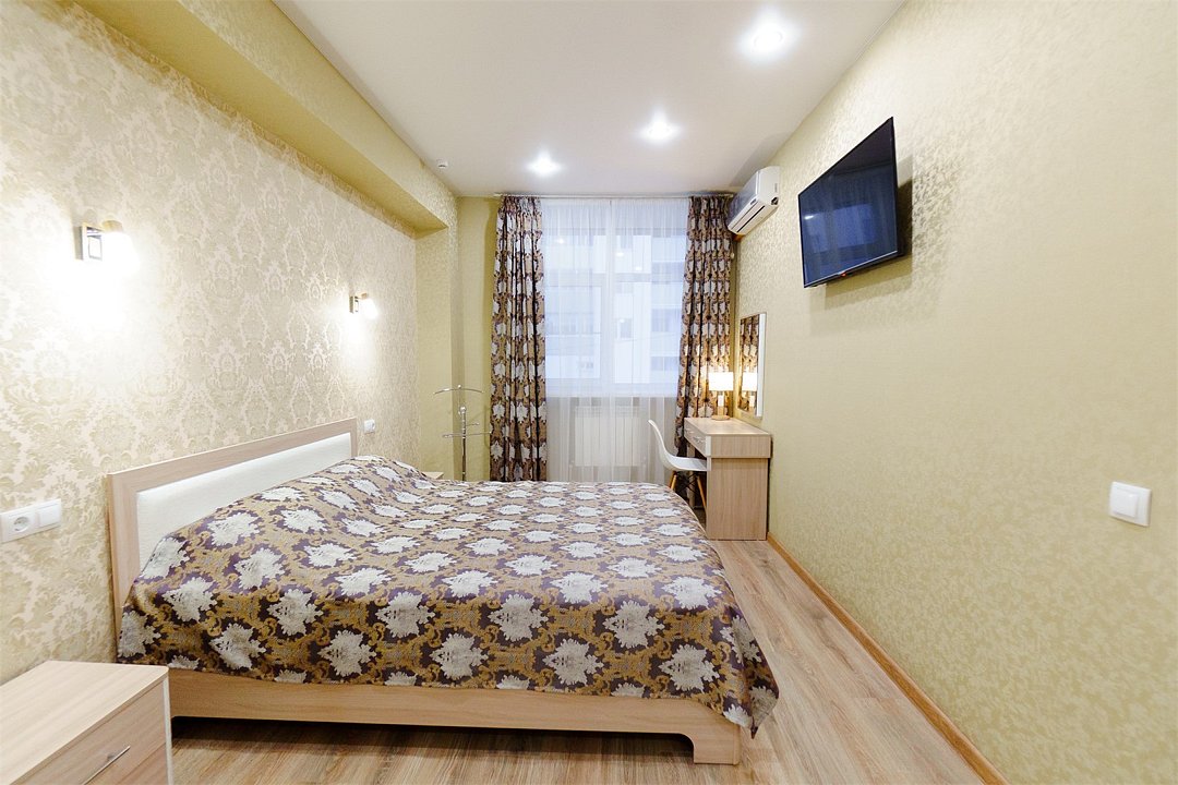 Wi-Fi, светильник, фен, электронные замки, душевая кабина, халаты, тапочки, гигиенические средства, двуспальная кровать, диван, тумбы, шкаф для одежды, журнальный столик, письменные принадлежности, информационная карта, меню, сейф, унитаз, раковина, отопление, душ, вид на город, вид во двор, ламинат, высокие потолки, туалетный столик, сплит-система, цифровое тв, телевизор с плоским экраном, москитная сетка, номер для некурящих, пуфик, антибактериальное средство для рук, планшет, без питомцевВ номере