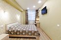 Спальня: кровать 1,6 м, телевизор, кондиционер, туалетный столик. Гостинная: диван, кресло, журнальный столик, горка, телевизор, сейф. Шкаф. В номере туалет, душ. В наличии полотенца, туалетные принадлежности, халаты и тапочки.Услуги и удобства