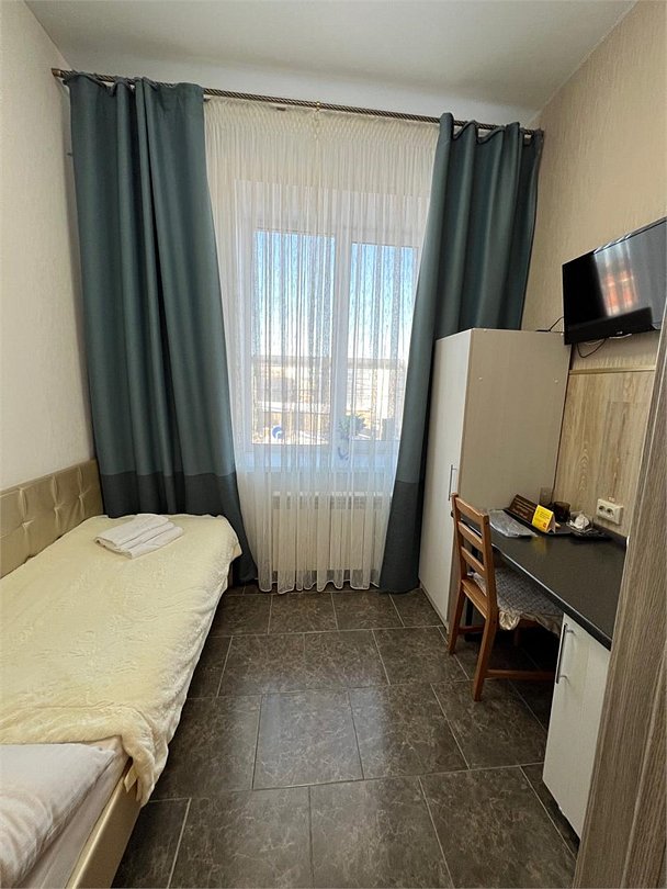 Небольшой одноместный номер с одной кроватью. В номере есть шкаф для одежды, стол, стул, раковина для умывания. Душ и туалет общий на три номера.Услуги и удобства