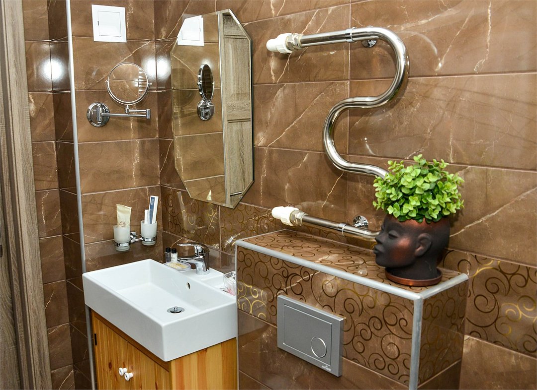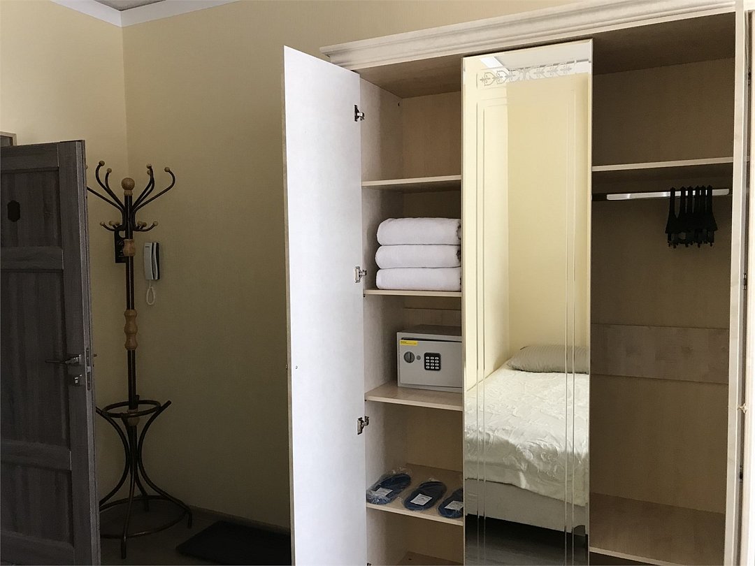 Маленький уютный номер с внешним на три номера санузлом . В номере есть раковина для умывания, телевизор, шкаф для одежды.Услуги и удобства