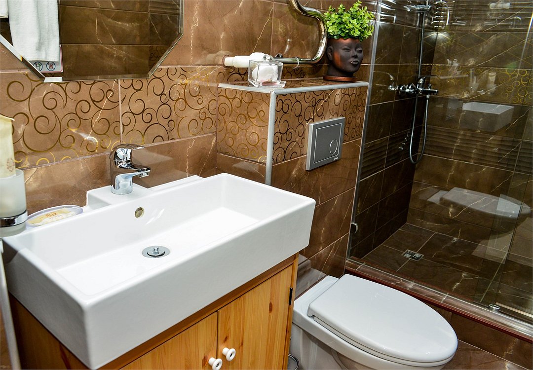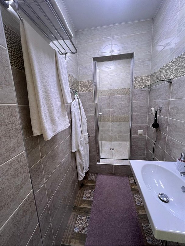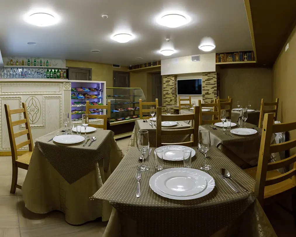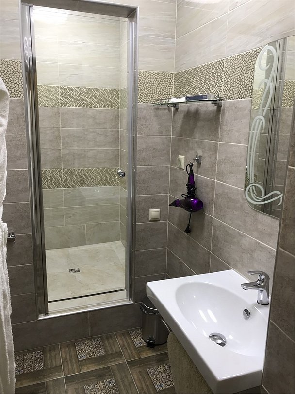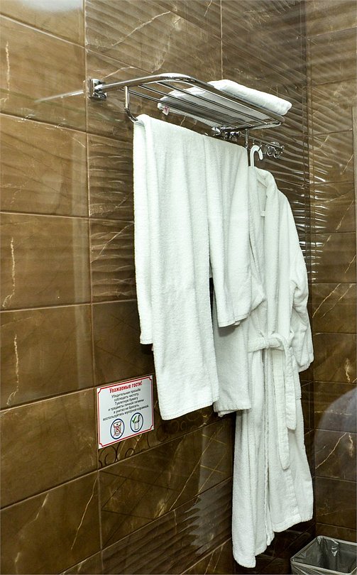 В нашем номере была широкая двухспальная кровать с ортопедическим матрасом, постельное белье новое из качественного страйп сатина, стол со стулом, платяной шкаф, телевизор с большим плоским экраном, кондиционер и холодильник. Люстра и прикроватные светильники заслуживают отдельного внимания. Красивые и функциональные. В душевой нас ожидали одноразовые гигиенические принадлежности (даже, зубные щетка и паста). В отель приходили только спать (гуляли по городу), поэтому наличие автомойки рядом не смущало. А вот наличие закрытой автостоянки порадовало. В отель хорошо бы заехать осенью или зимой с компанией друзей и оценить все прелести сауны.