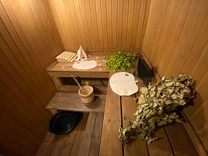 Для гостей приготовлены мягкие махровые халаты, чтобы чувствовать себя уютно и комфортно, ароматные травяные чаи с домашним вареньем, которые дарят ощущение домашнего уюта, и венички из березы и дуба, которые наполняют воздух целебными ароматами.