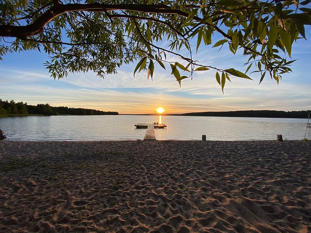 На пляже с мягким песком есть все необходимое для активного семейного отдыха: пирс, волейбольная площадка и прокат водного снаряжения.