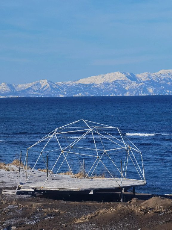 Глэмпинг «Черный остров» расположен на острове Кунашир на берегу Охотского моря.