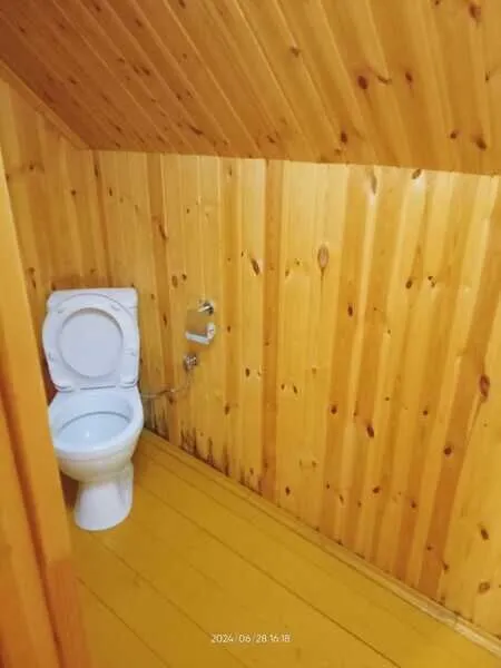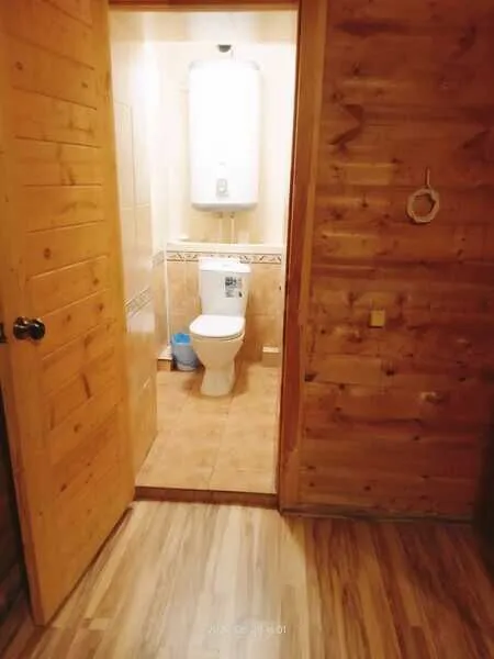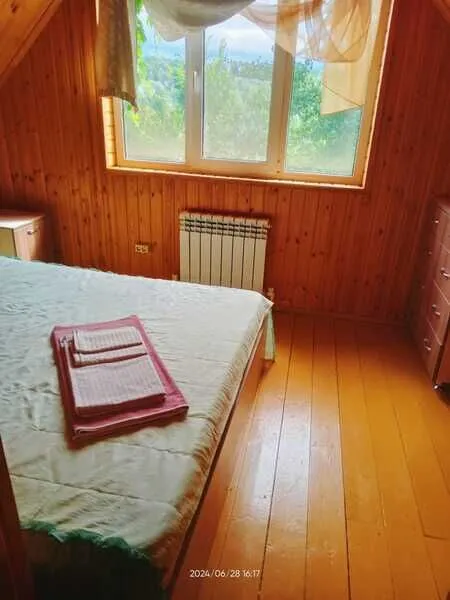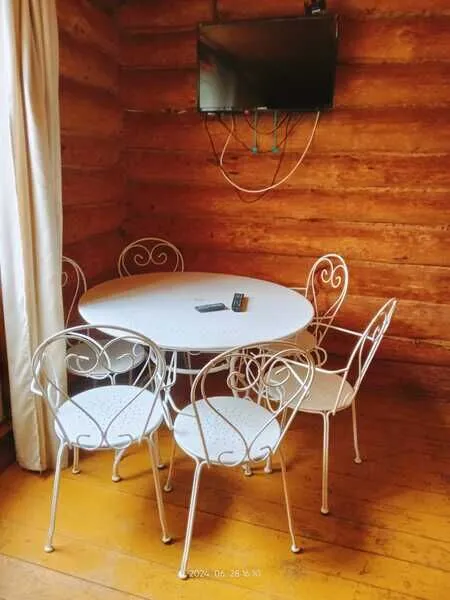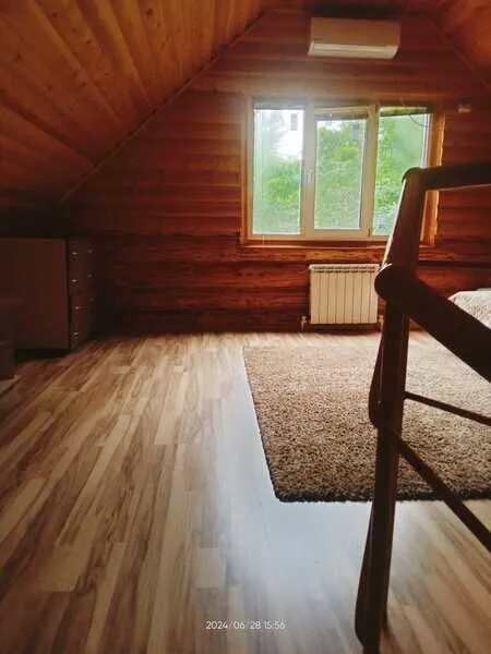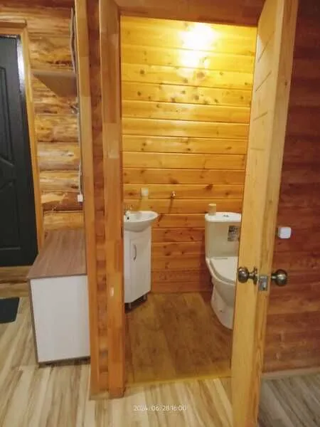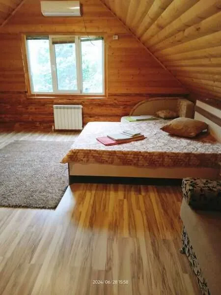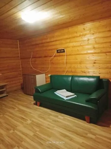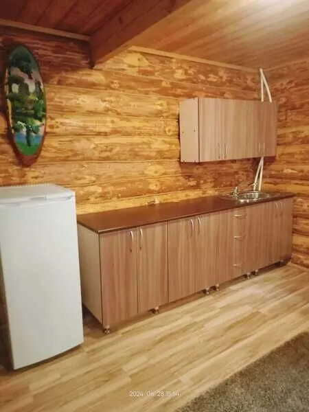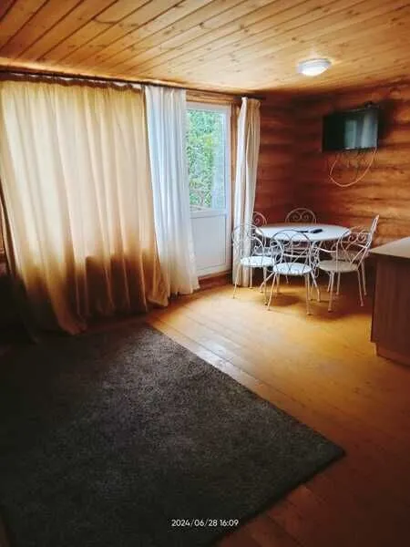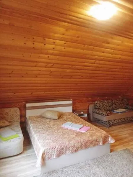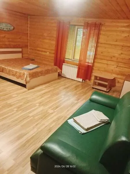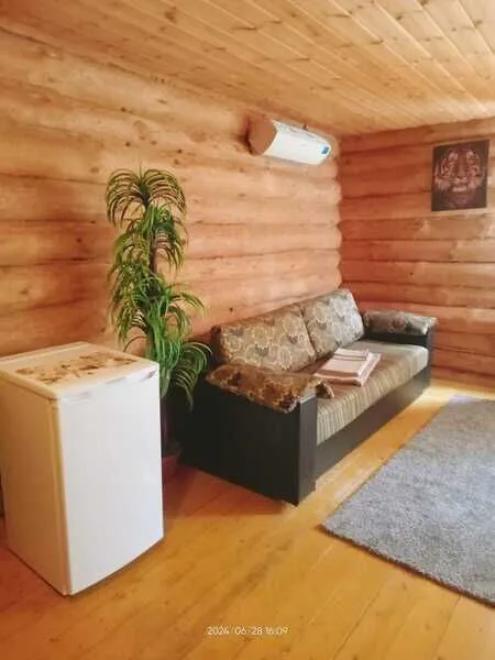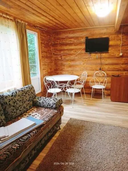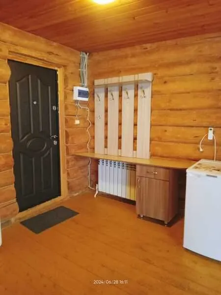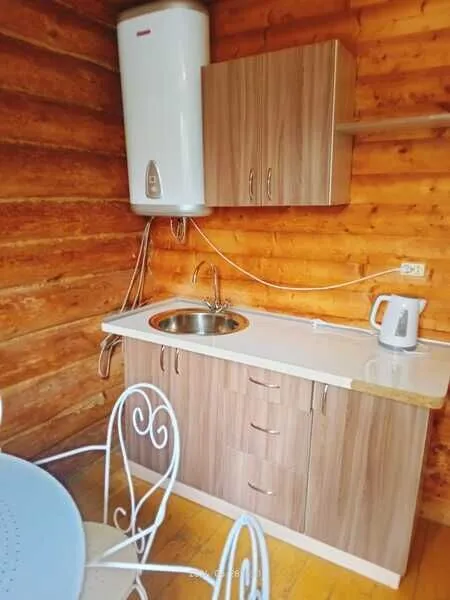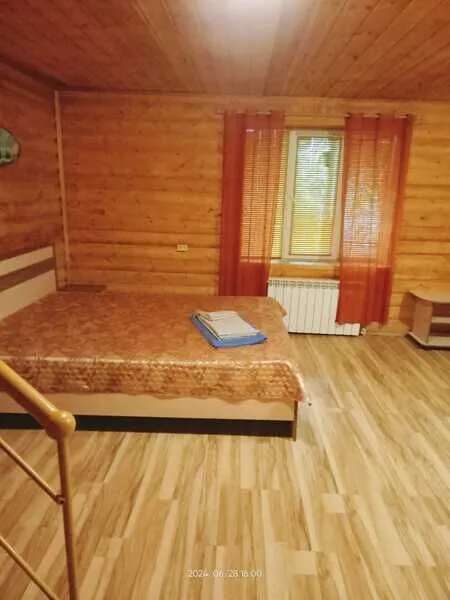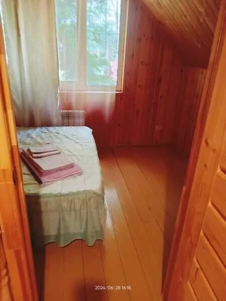 Домик двухместный, деревянный. Внутри двуспальная кровать, прикроватный столик, холодильник. Без удобств. С беседкой и мангальной зоной.