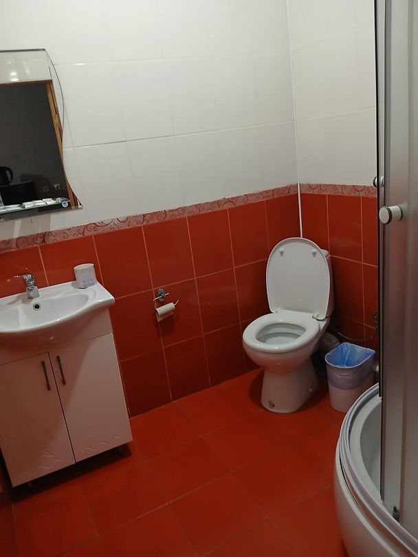 Душ, туалет, кондиционер, холодильник, микроволновка, чайник.