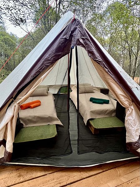 Уединенные летние шатры расположенные в Национальном парке «Угра», в 5-10 минутах ходьбы от рек Угра и Ресса по лесной тропе.