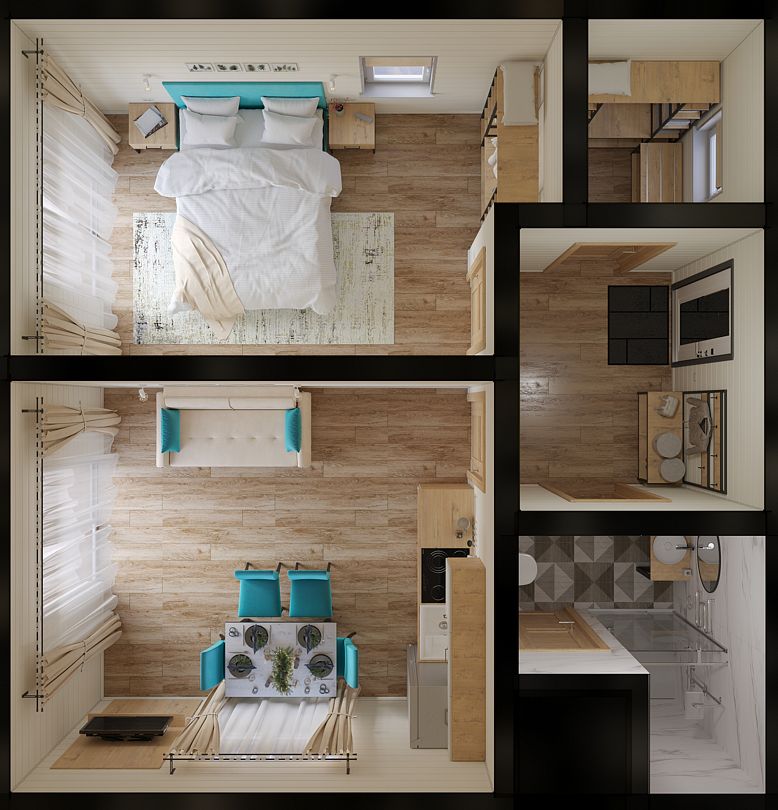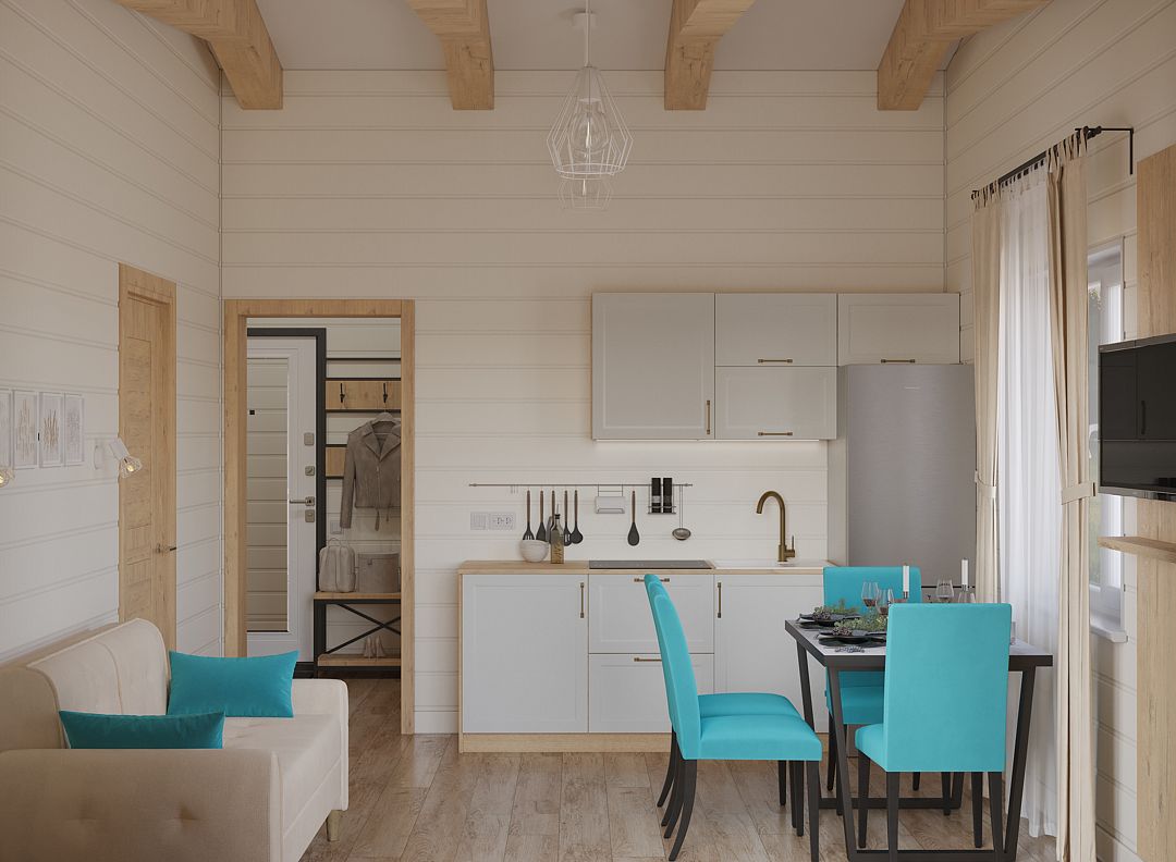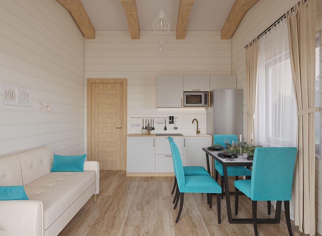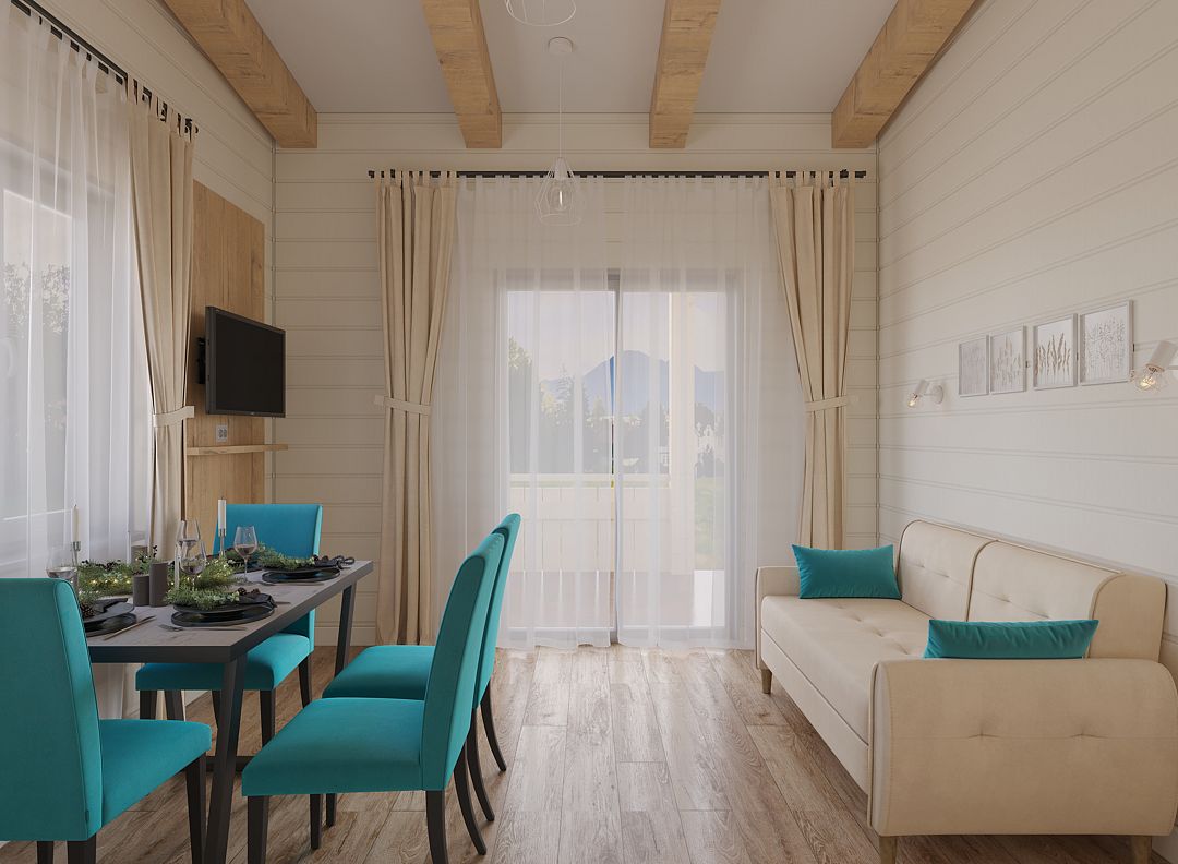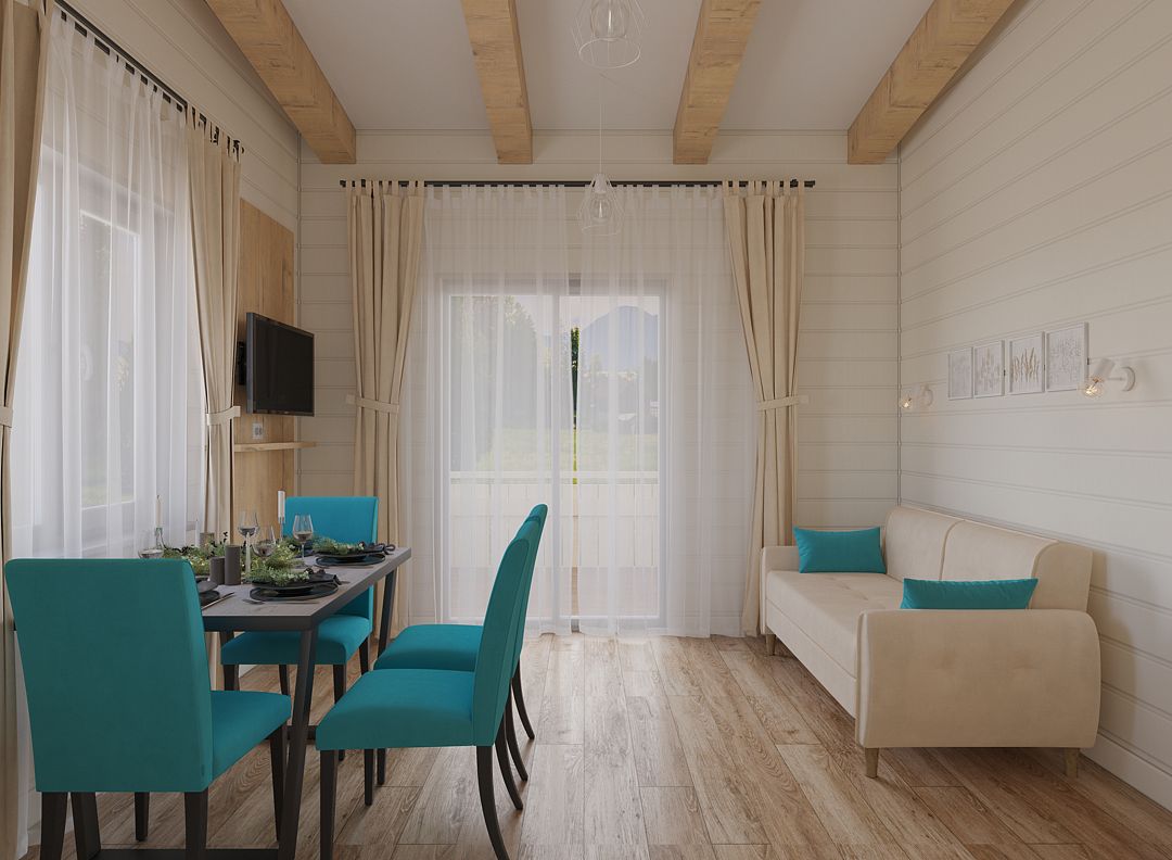 Здесь вас ждет соединение функциональности и комфорта, экологичности материалов и вдохновляющих бирюзовых акцентов дизайна, синергия с живописной природой национального парка «Угра».