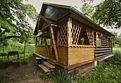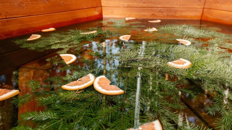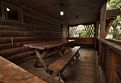 Аутентичность банному парению придаёт расположение бани и чана – вдали от всех домиков и в окружении вековых сосен.