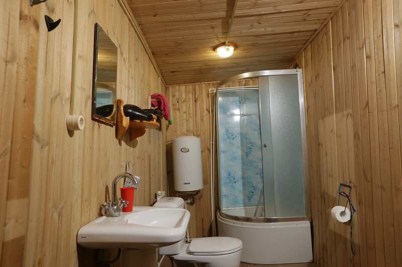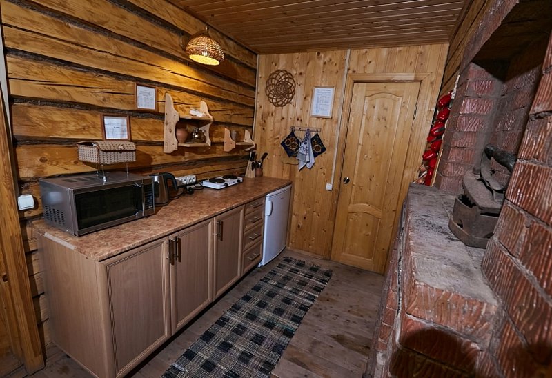 Домик/сруб теплый для круглогодичного проживания. В нем три комнаты — один спальный зал, кухня и душ/туалет. А также большая терраса со столом на 8 человек. Готовить можете как на своей мангальной зоне, так и внутри домика: для этого всё есть — от вилки до кастрюли. Вода в кране питьевая отличного качества. Отличный вай-фай, TV на 20 каналов и прекрасные виды из окна. Связь на парк-отеле следующая: 1. Интернет 100Мб/сек пароль вай фая 123987123 2. Операторы мобильной связи в домике Билайн, МТС, Мегафон, на улице Теле2. Вы будете один на один с природой с чудесными видами из окна и с террасы