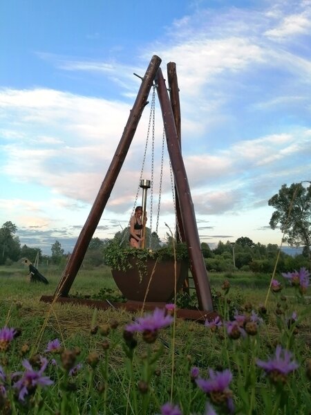 К услугам классическая шестигранная форма чана, подвешенная к цепям уходящей в небо сосновой треноги. В чан интегрирована печь с «РУБАШКОЙ» и с дверцей из жаростойкого стекла.