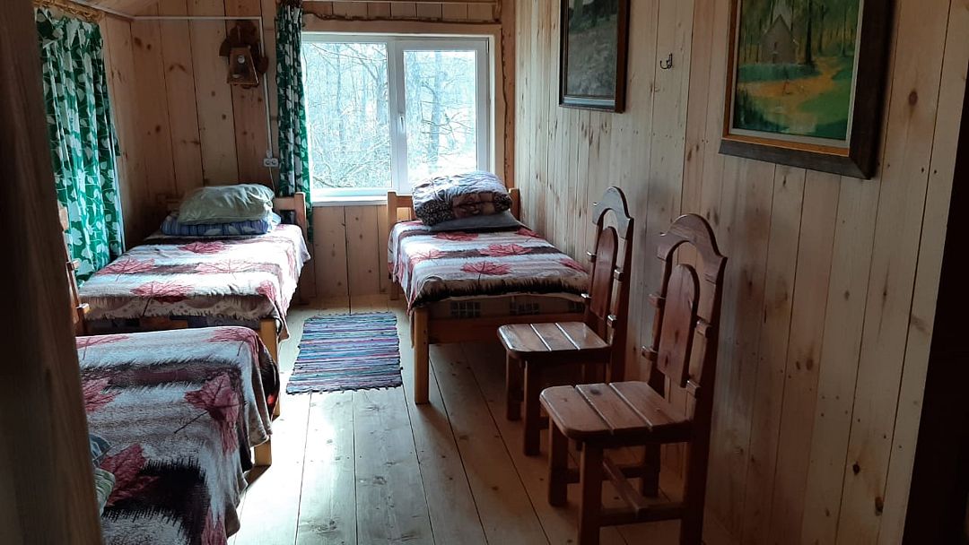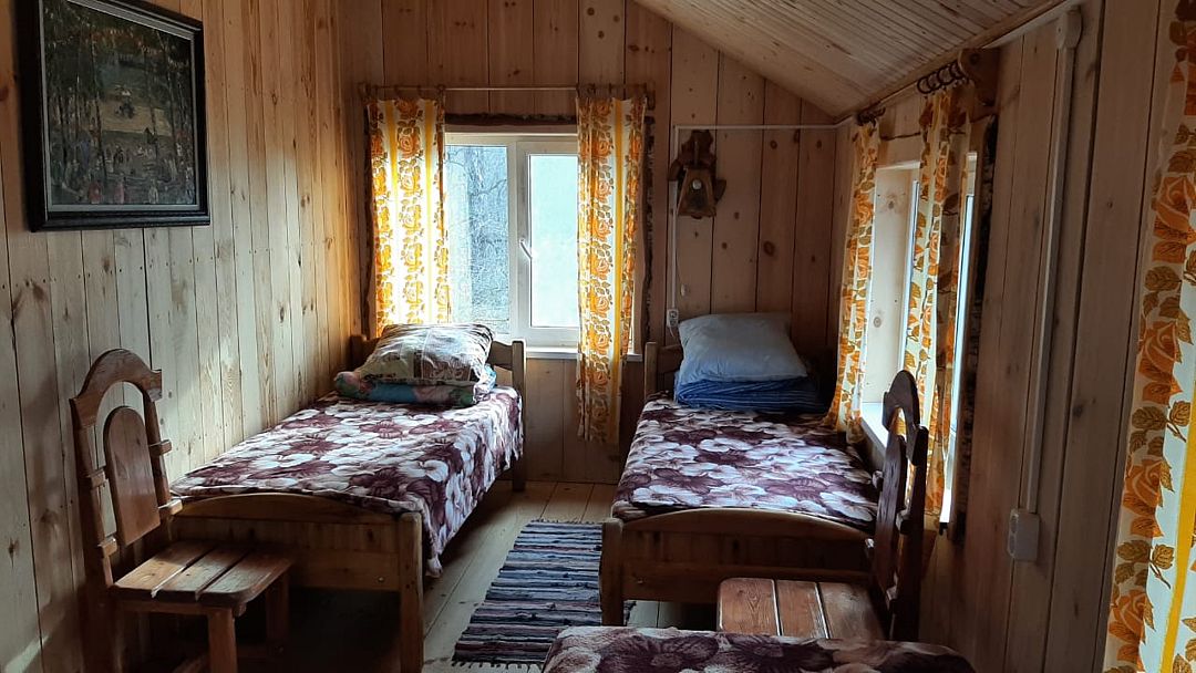 В нем две спальни и кухня. Расположен непосредственно на берегу реки и рядом с лесом.