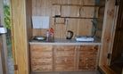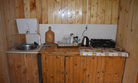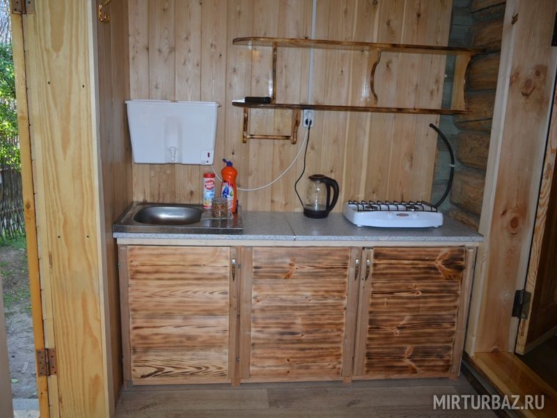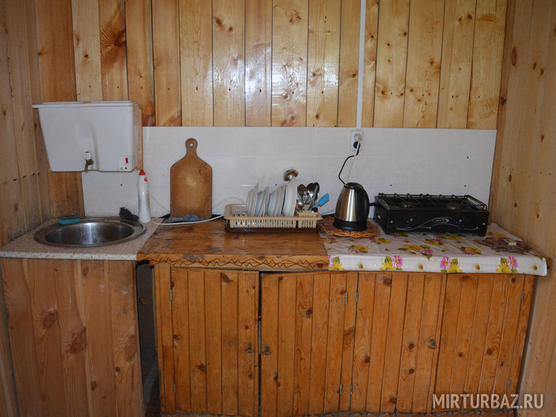 - открытая кухня с посудой, холодильником, электрической плиткой и горячей водой;