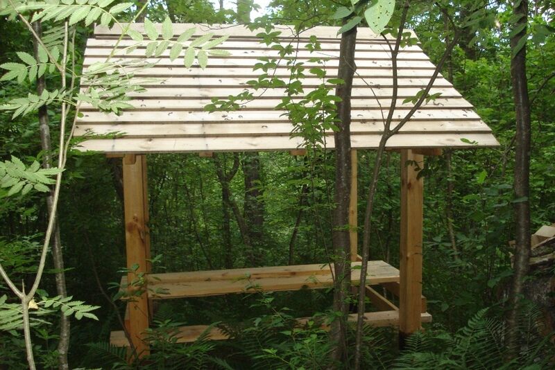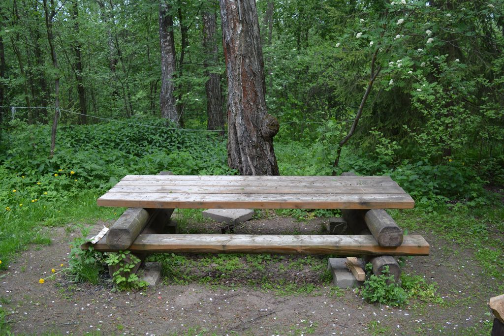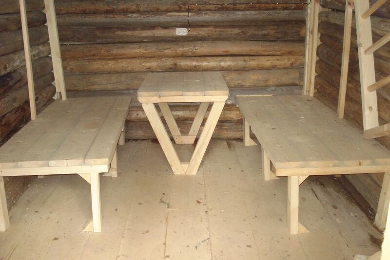 Стол, скамьи, печка, дрова, вешалки, беседка.