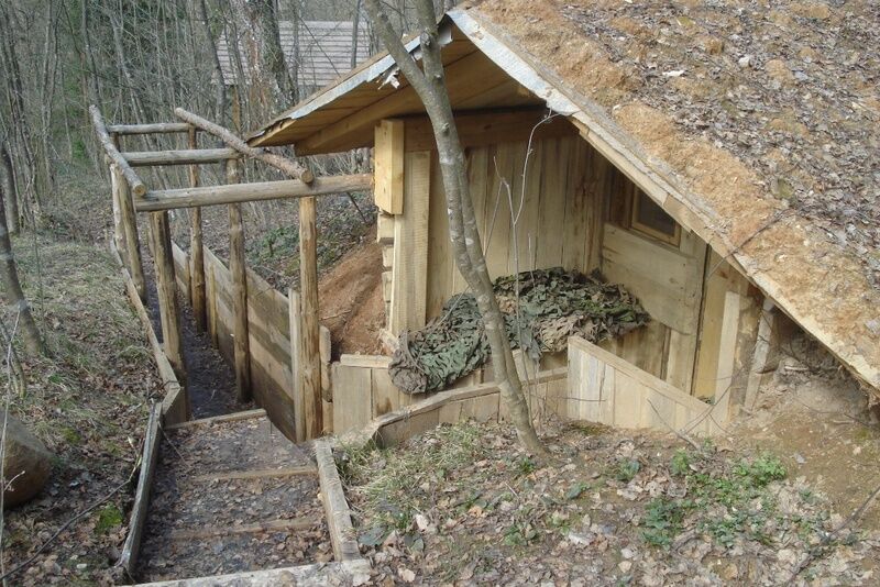 Блиндаж на территории агроусадьбы военного типа с возможностью проживания в нём в тёплое время года (для любителей необычного отдыха на природе). С печкой замёрзнуть не получится))) Для ребёнка (двух детей) имеется отсек у потолка. Рядом с блиндажем расположена беседка для пикника. Всю необходимую информацию можно получить, позвонив нам.