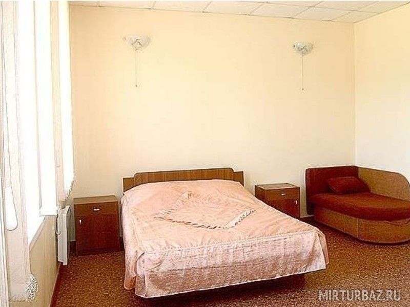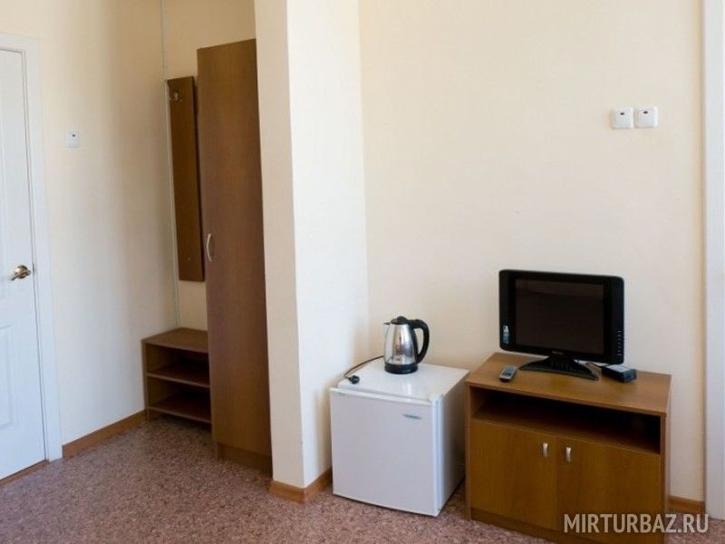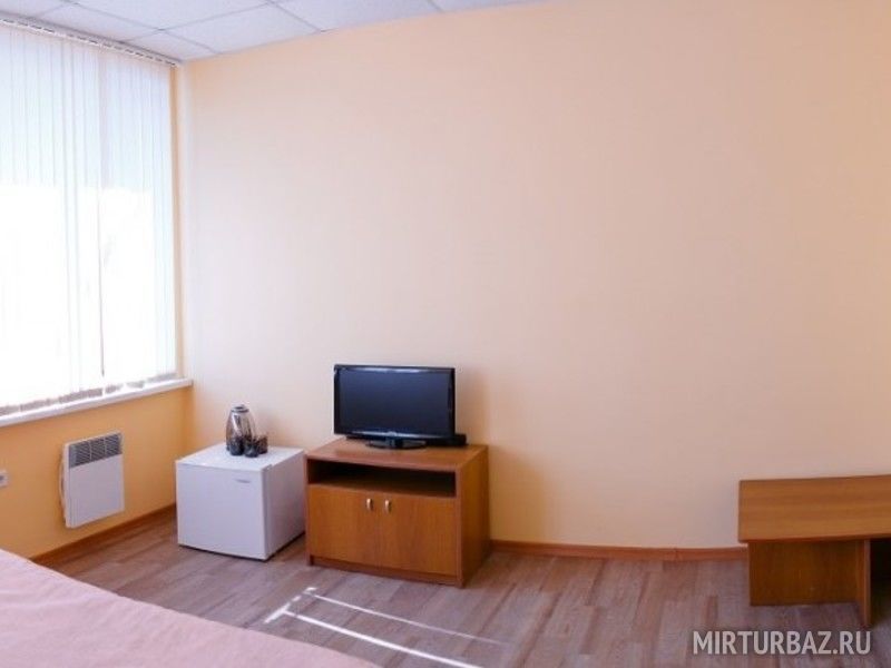 В номере: одна двуспальная кровать, телевизор, холодильник, журнальный стол, шкаф, 2 прикроватные тумбы, санузел, 2 комплекта постельного белья и полотенец.