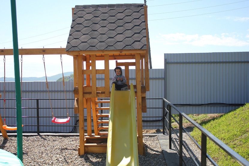 На территории оборудована детская площадка с горкой, качелями и батутом, мангальные зоны и уютные беседки для отдыха,