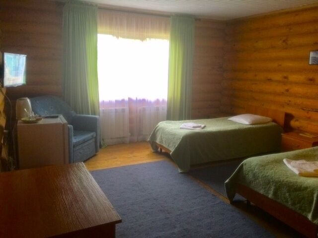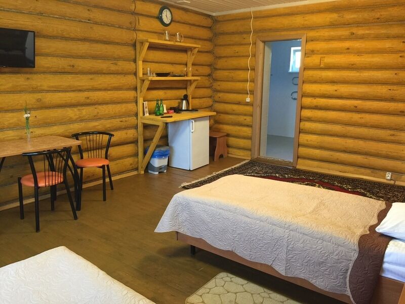 Отдельно стоящий рубленный домик с изолированными 2-мя номерами со всеми удобствами. В номере 2 кровати, креслокровать, телевизор, холодильник, чайник.