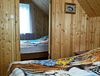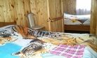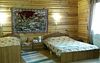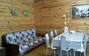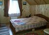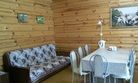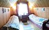 На первом этаже большой стол, стулья, двуспальный диван, кресло-кровать. На втором этаже две спальни с двумя двуспальными кроватями. Одна из спален полностью изолирована.