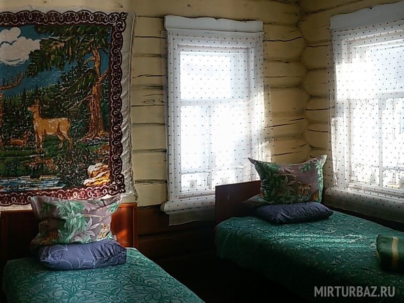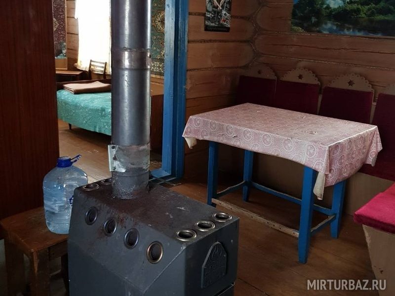 Деревенская изба с печным отоплением. Кухня, четыре кровати без постельного белья, туалет на улице.