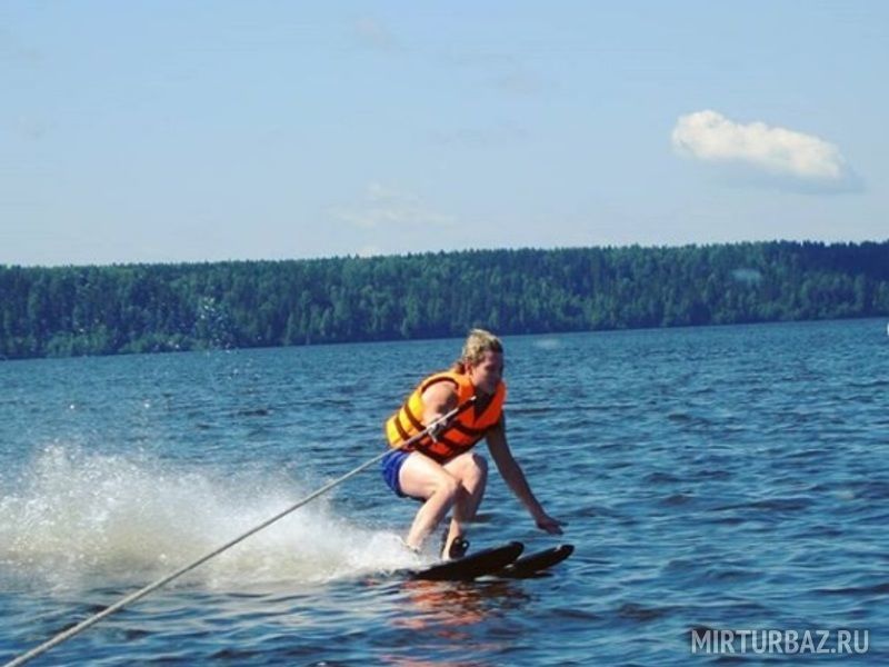 Катание на водных лыжах (1 попытка/5 мин.) — 150 руб./300 руб. за 1 человека.