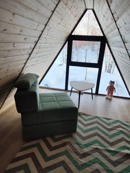 Для аренды доступно 4 домика А-фрейм на 4 и 6 гостей. Внутри каждого Вы найдёте все необходимое для проживания: кондиционер, просторная ванная комната, оборудованная кухня, телевизор со smаrt ТV, удобная мебель, чай, фужеры и набор для чайных церемоний и прочие приятные мелочи.